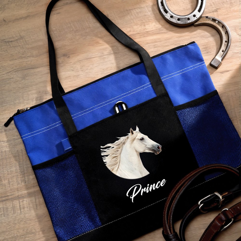 This tote bag features a customizable photo on the front, showcasing a lifelike image of a horse, capturing its power and spirit. A customizable name elevates the beautiful image into a heartfelt memento. The contrasting colour design enhances the overall aesthetic, adding a modern and personalised touch.
