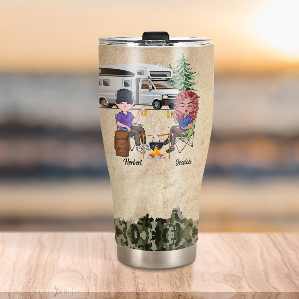 This is a tumbler designed around the theme of couples camping, with the Personalised quote and characters, it is attractive for those who like camping or want to stand out from the crowd.