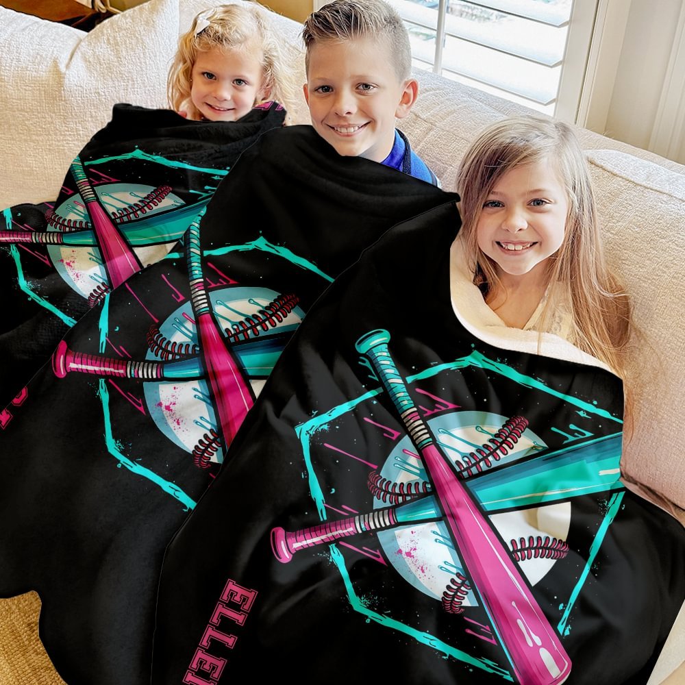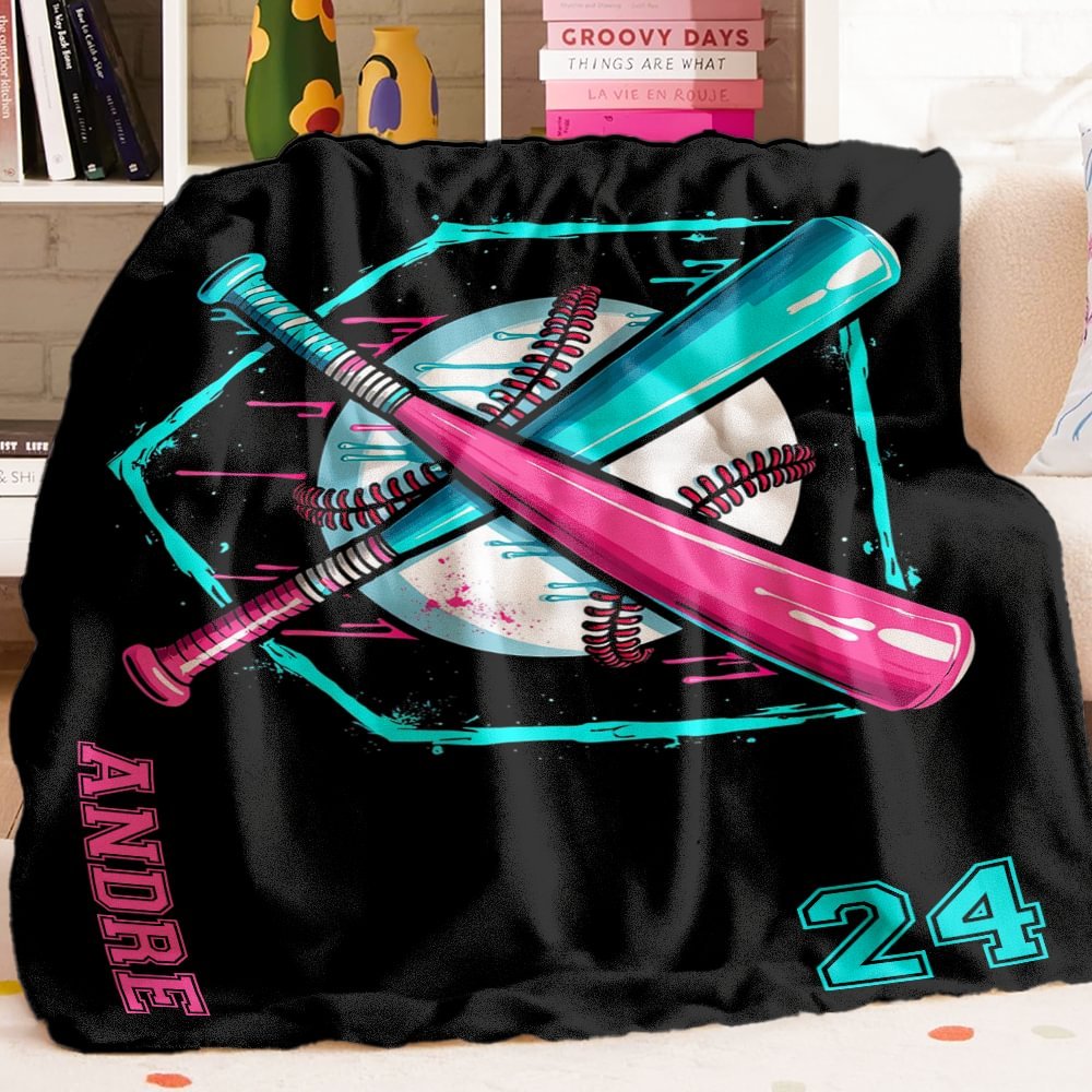 Personalised Ice Cream Drip Baseball Soft Throw Blanket with Name and Number Christmas Birthday Gift for Coaches Baseball Players