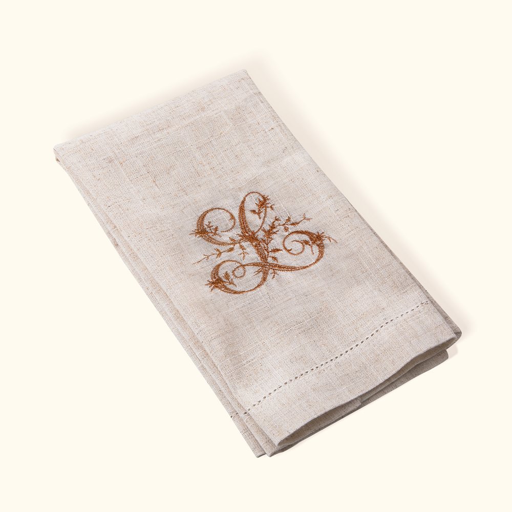 Each napkin features a beautifully embroidered initial, combining the recipient's first letter with delicate floral motifs. This customization adds a personal touch to the gift, showcasing the recipient's individuality and creating a lasting impression.