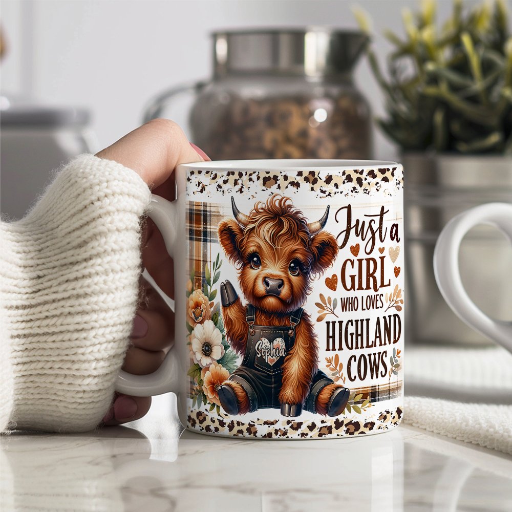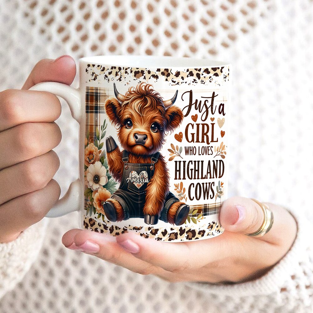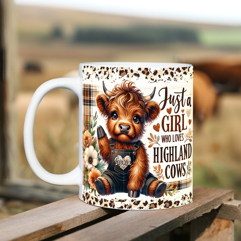 This mug Featuring a sweet baby Highland cow surrounded by blooming wildflowers, it's like stepping into a picturesque rural landscape. The intricate details bring the scene to life, from the cow's innocent eyes and fuzzy coat to the vibrant colours that evoke the freshness of the countryside.