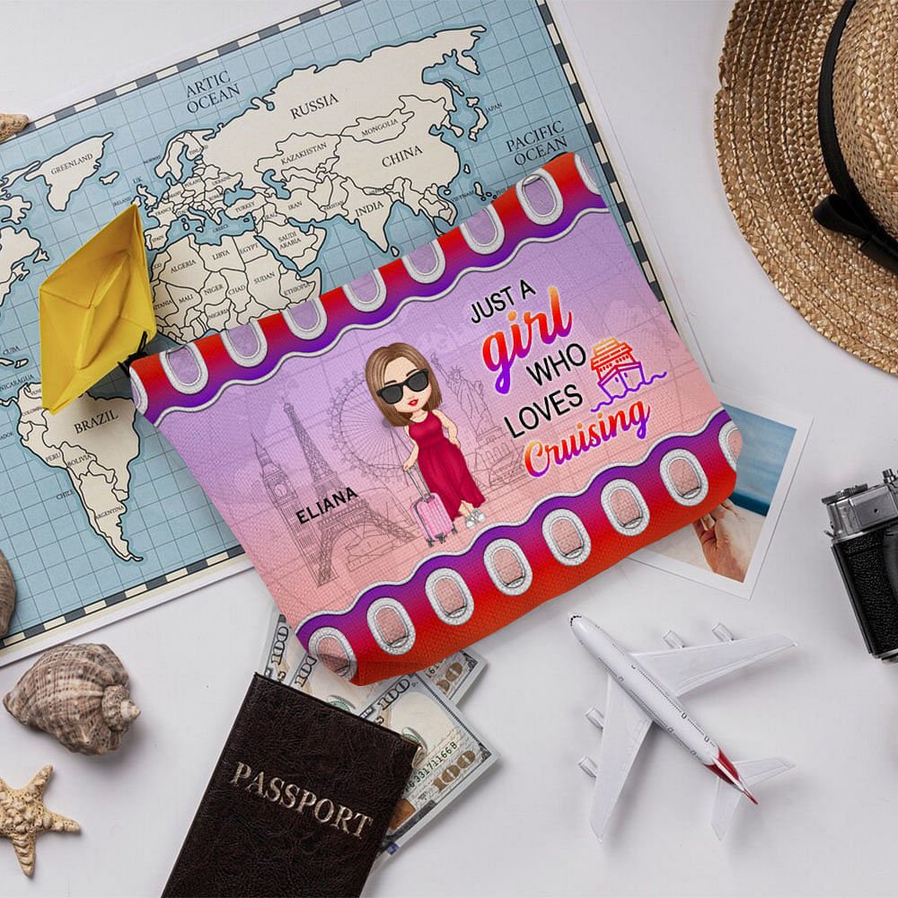 This makeup bag features an adorable cartoon design that beautifully captures the essence of wanderlust. With the various travel themes and playful phrases, such as "Just A Girl Who Loves Traveling," it's a delightful reminder of all the adventures that await. Personalise it with her name for that extra special touch, ensuring this bag is uniquely hers. The vibrant colours and whimsical illustration will inspire joy and wanderlust whenever she reaches for it!