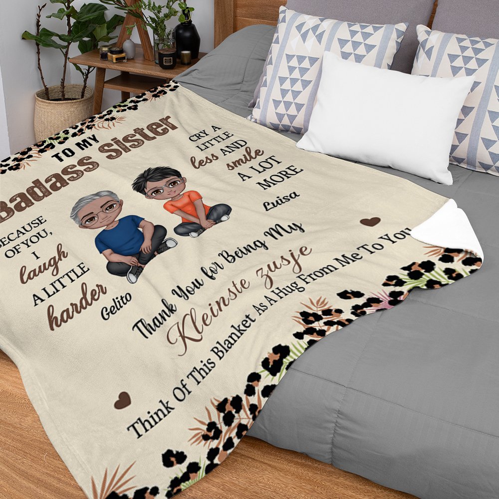 The blanket is printed with two cute cartoon characters, representing you and your best sister/brother, and accompanied by warm words to convey deep friendship and gratitude. Warm colours and interesting leopard patterns are also incorporated into the design, making the blanket stylish, vibrant, and suitable for the public's aesthetics. You can personalise the name title and copywriting to make it more unique.