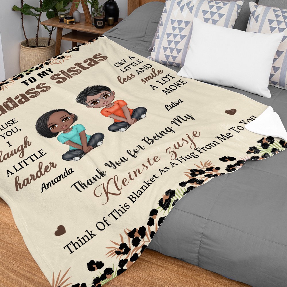 The blanket is printed with two cute cartoon characters, representing you and your best sister, and accompanied by warm words to convey deep friendship and gratitude. Warm colours and interesting leopard patterns are also incorporated into the design, making the blanket stylish, vibrant, and suitable for the public's aesthetics. You can personalise the name title and copywriting to make it more unique.