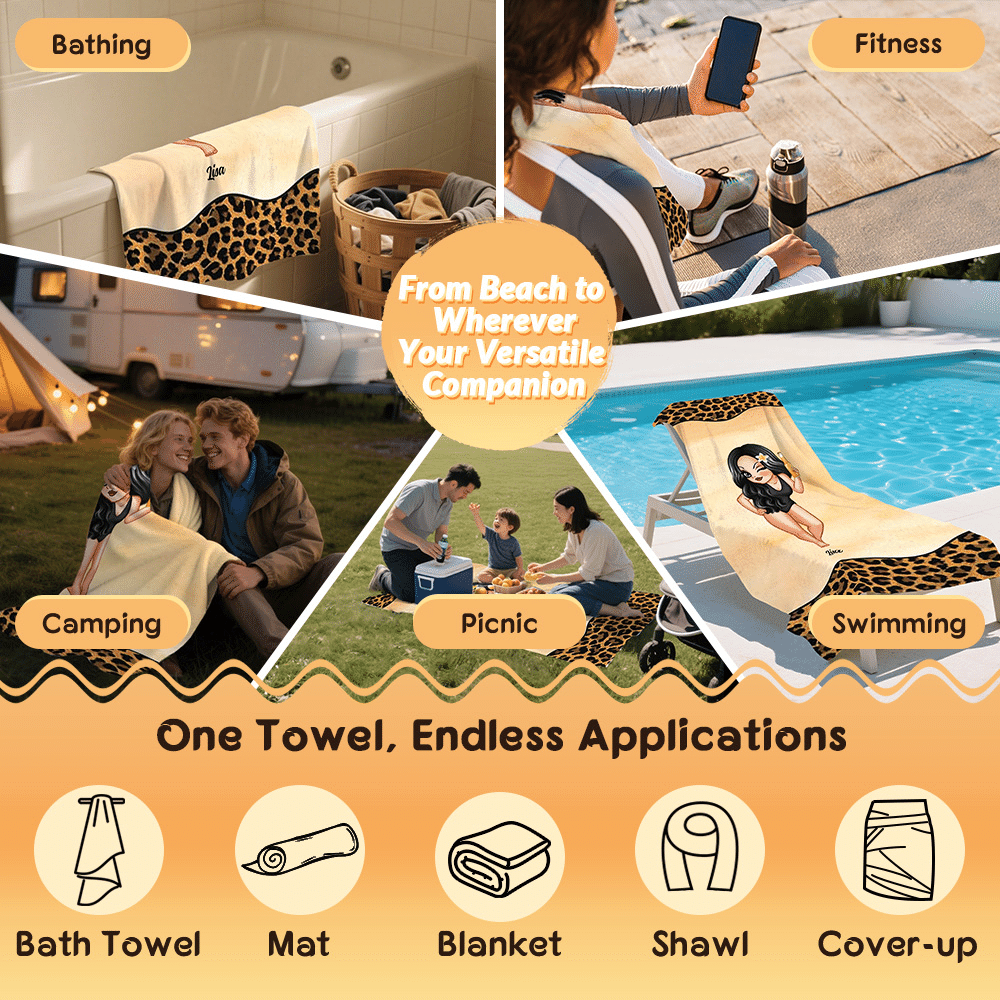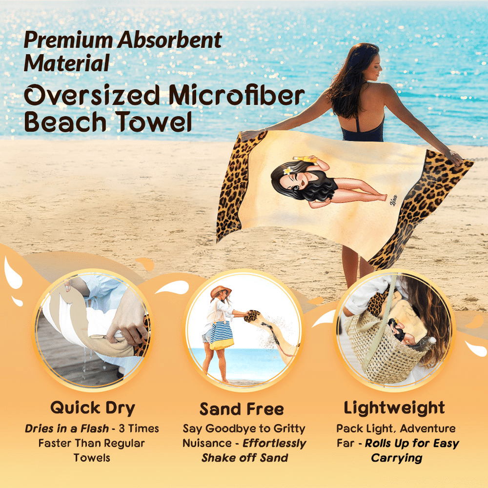 Made from select soft, skin-friendly beach towel fabric, this absorbent, breathable, lightweight, and portable towel folds easily for storage. It can be used for wrapping, wiping, or lying down. Durable and washable, it's perfect for frequent outdoor use in summer.