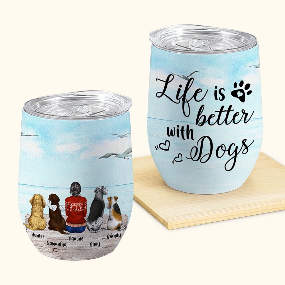 Personalised Life Is Better With A Dog Wine Tumbler Food-grade Stainless Steel Birthday Christmas Gift for Pet Lovers