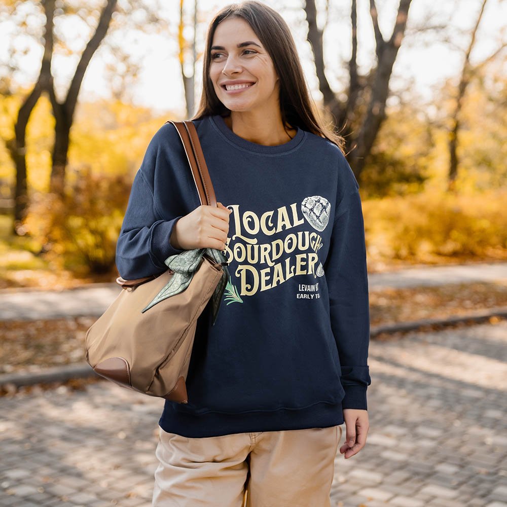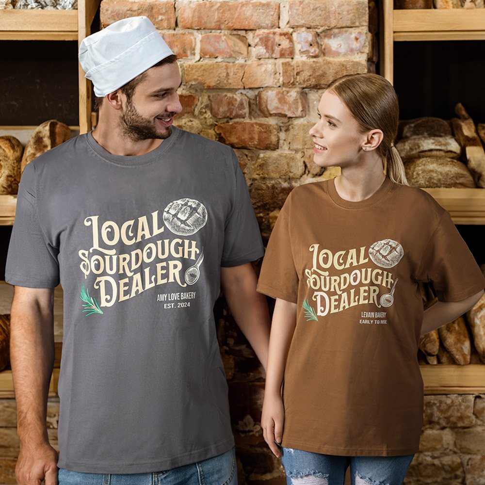 Made from soft, high-quality fabric and available in various colours, this crewneck sweatshirt not only showcases your love for sourdough baking but also offers versatile styling for everyday wear, ensuring you look great while promoting your bakery.