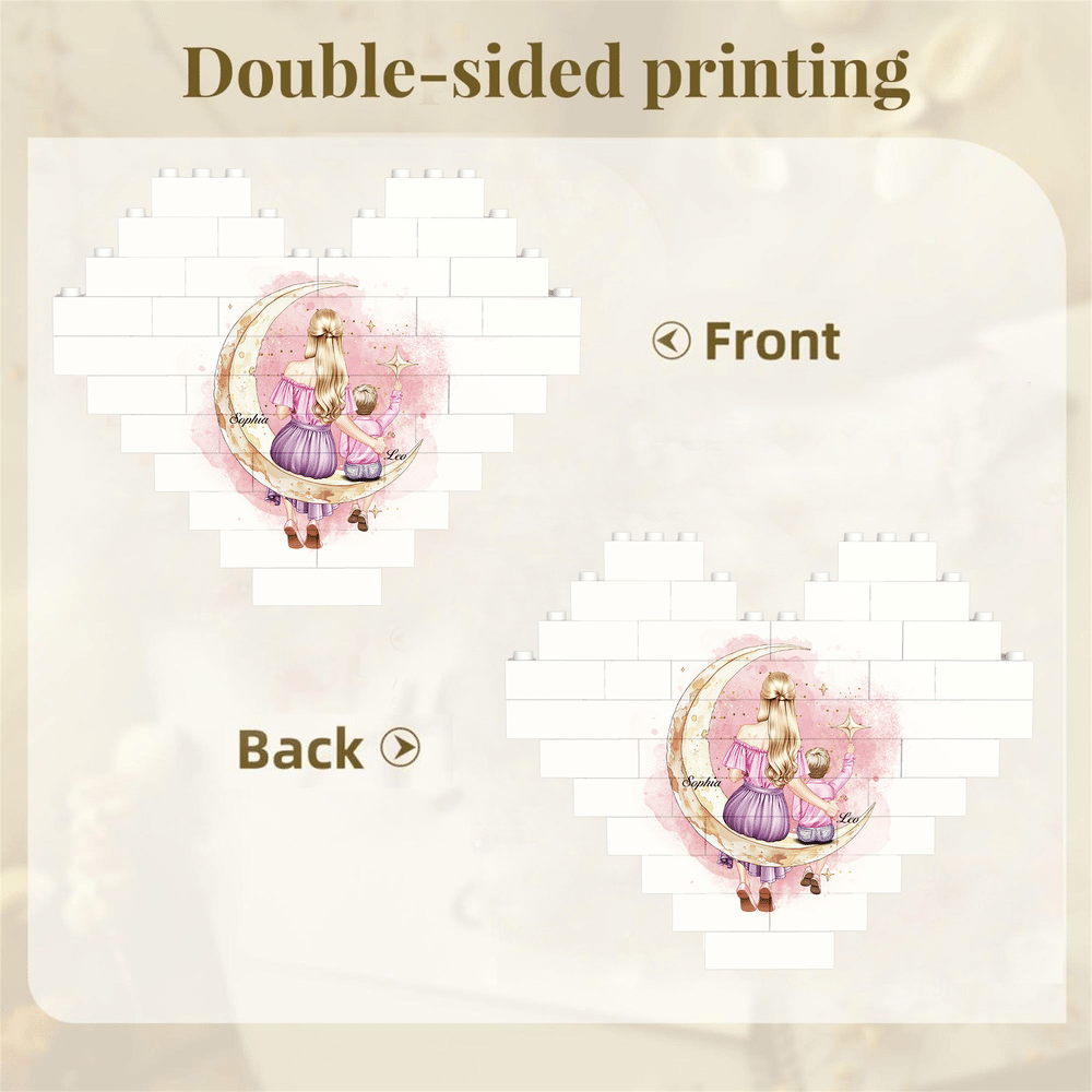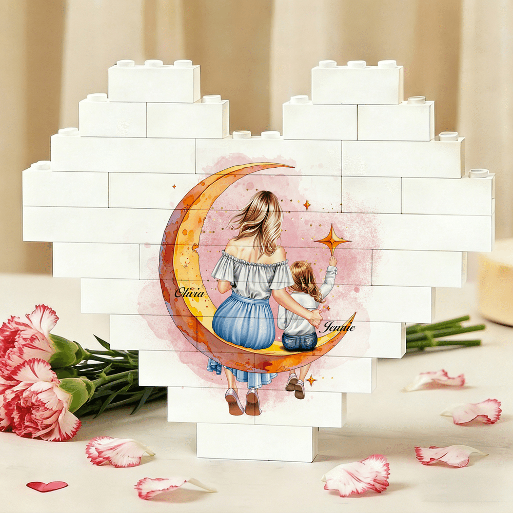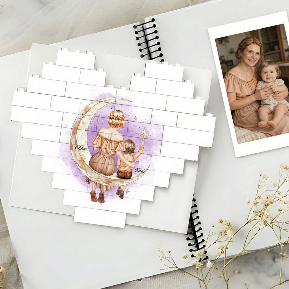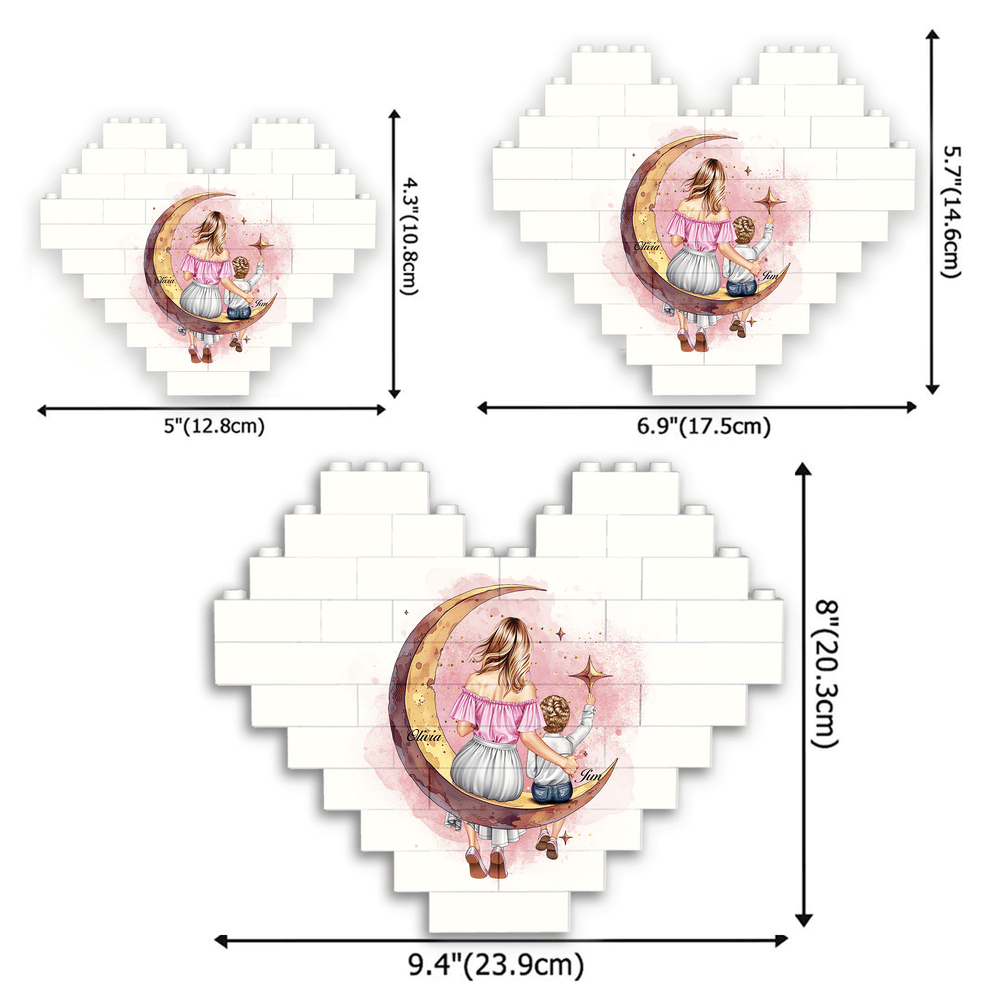 Warm and heartfelt, this custom heart-shaped star-and-moon building block figurine features a tender mother-and-child silhouette beneath a glowing night sky. The loving heart design is paired with a customizable name, multiple colour options, and available sizes. A sweet parent-child moment is transformed into a 3D block art piece—both a cozy home decor accent and a unique keepsake of growing up.