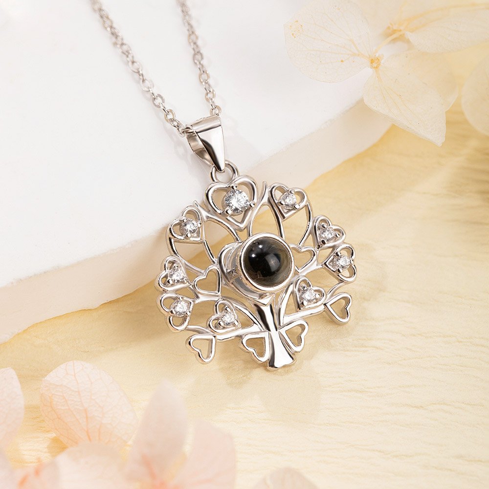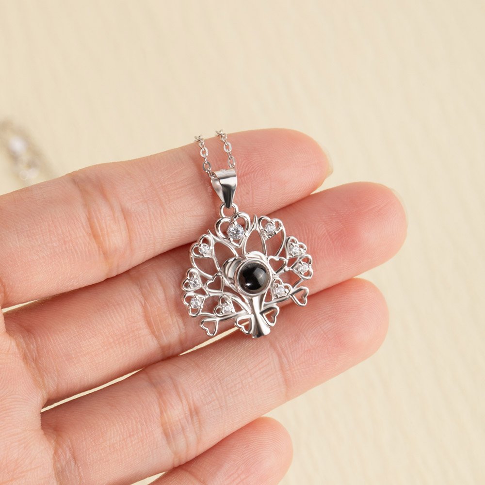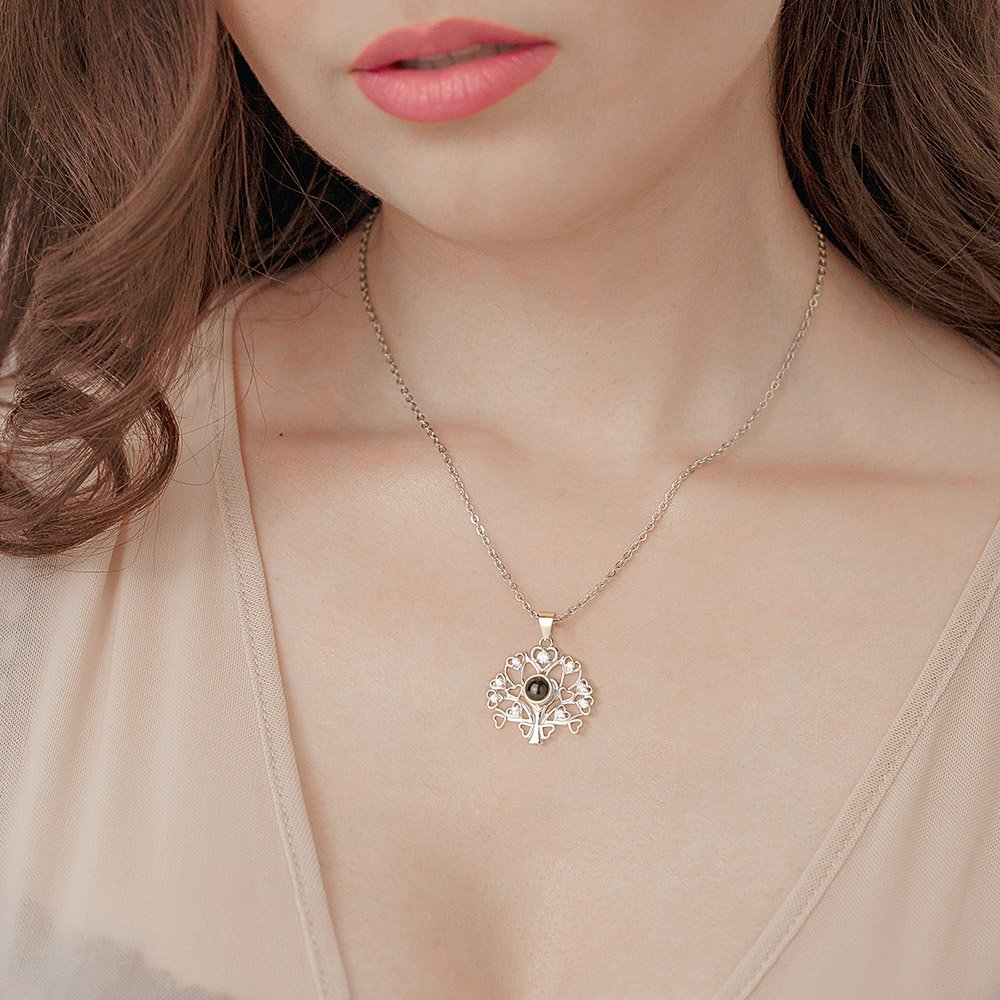 The necklace features a beautiful tree of life pendant that symbolizes growth, strength, and interconnectedness. Apart from this, the necklace can project your most precious photos onto a wall.