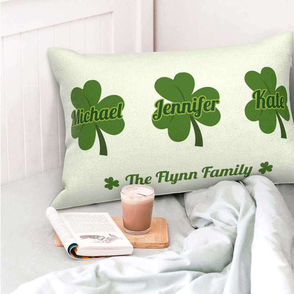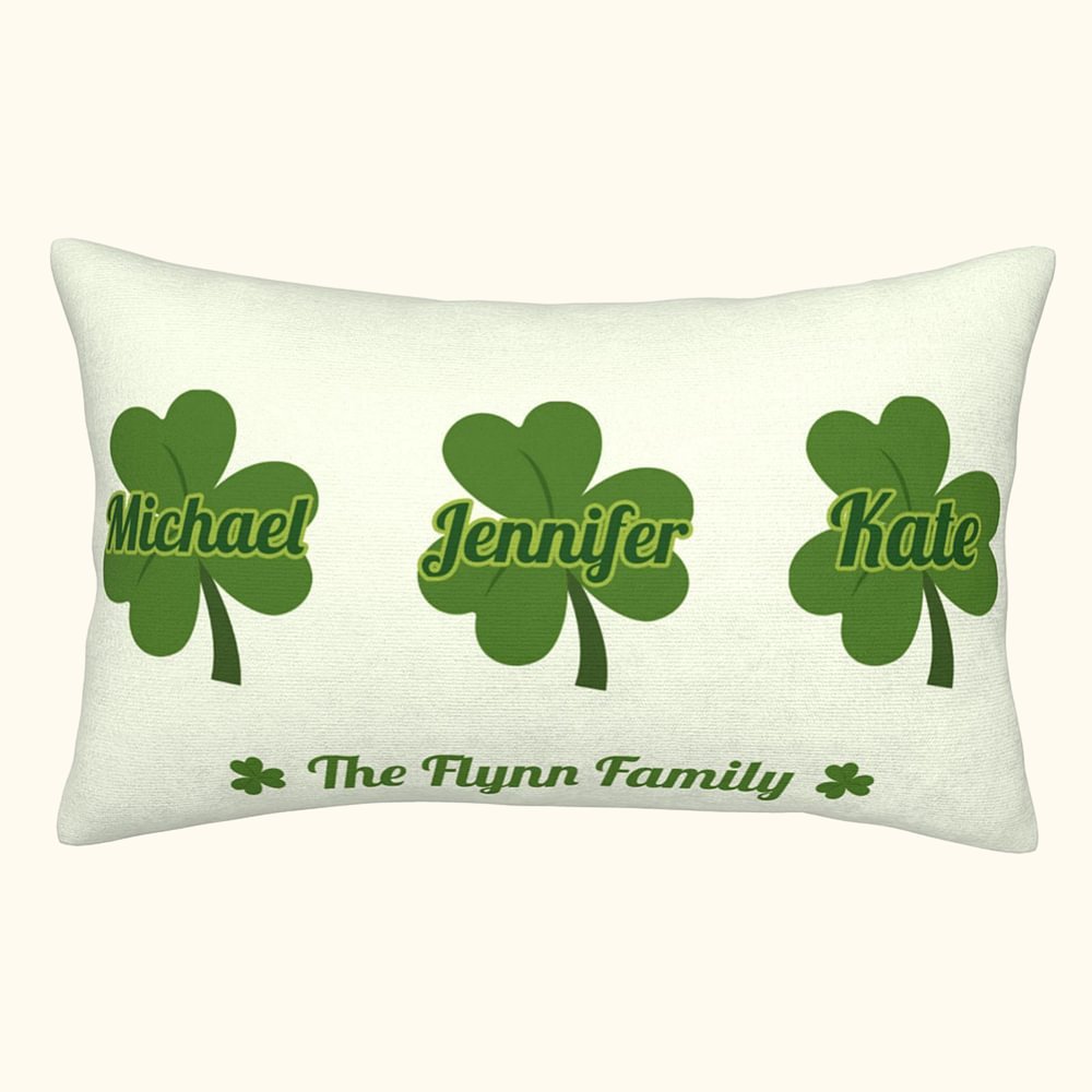 Personalised Lucky Shamrocks Throw Pillow Cover with Names Home Decoration St. Patrick's Day Gift for Family