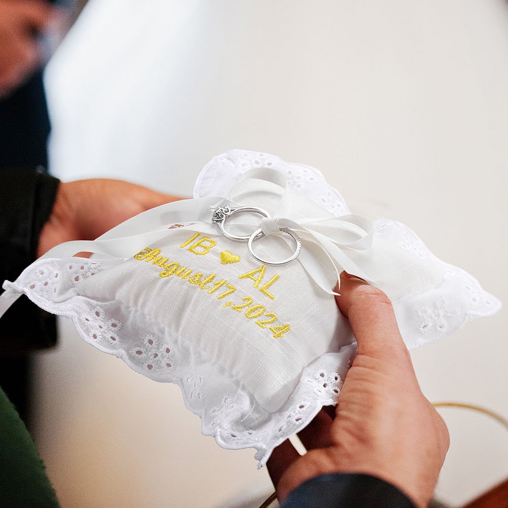 This luxurious ring bearer pillow is an exceptional gift for brides, grooms, or newlyweds. Its Personalised touch and elegant design make it a unique and thoughtful present that will be treasured as a memento of their special day, adding sentimental value to any wedding celebration.