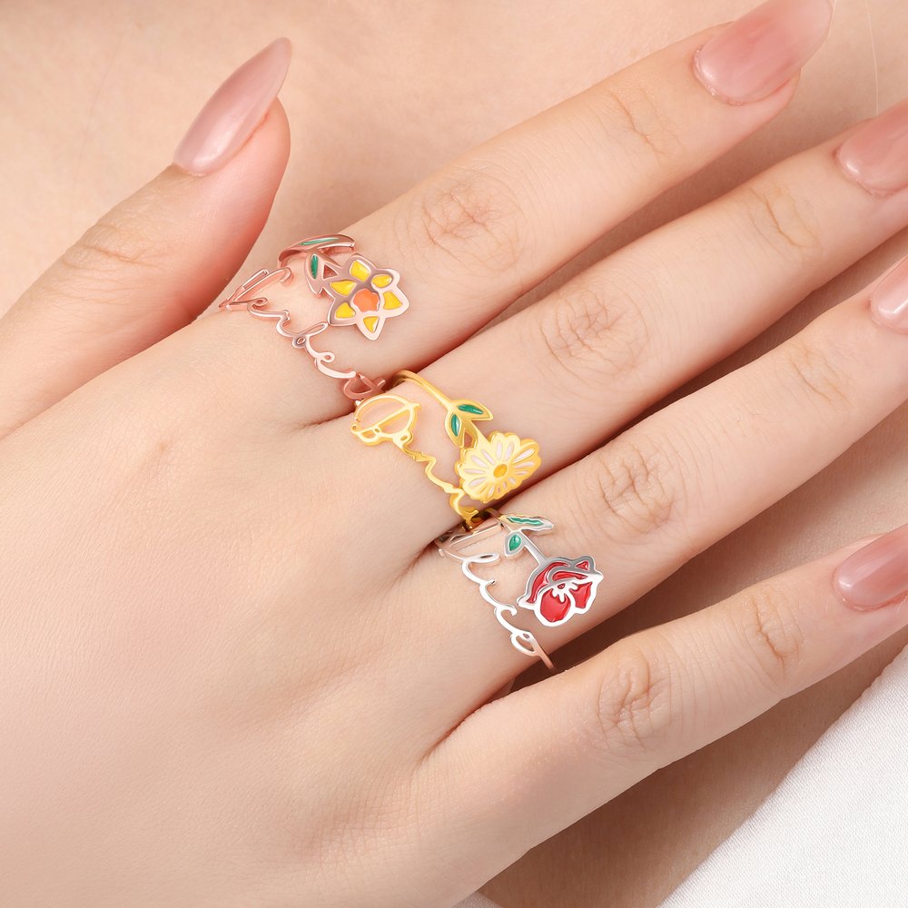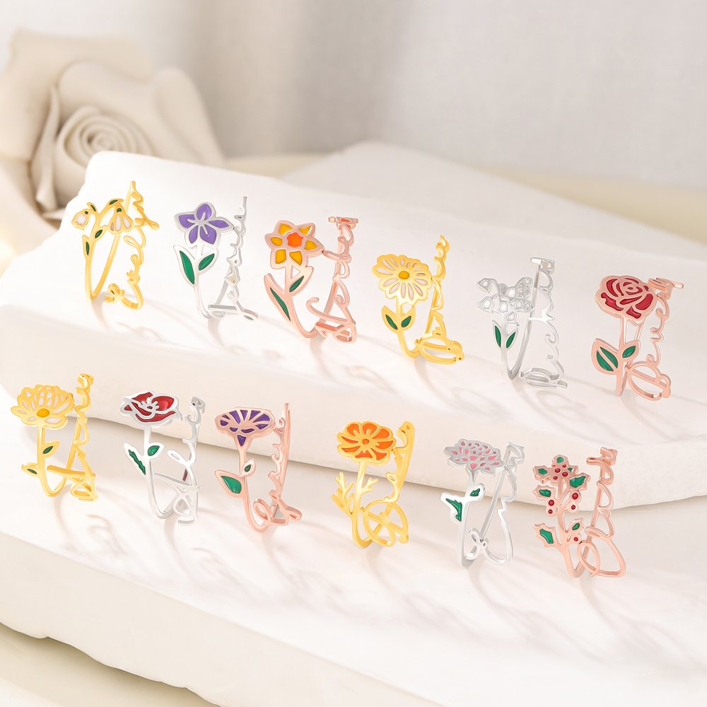 Each ring's design is inspired by the birth flowers of each month. Every flower not only represents a specific month but also carries deep emotional significance and symbolism. For example, January's snow lotus symbolizes love and warmth, while December's holly represents hope and blessings. By selecting a birth flower and customizing it with a name, every emotion can be made eternal, creating a unique and personalised memory.