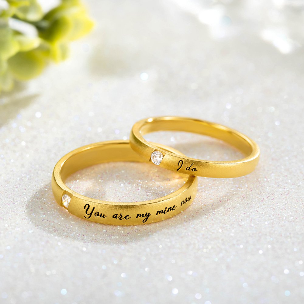 A pair of couple rings that can engrave with each other's name or any message, representing a kind of miss and company. This kind of innovation ring means: inject, loyal, observant, valiant, enjoyment, yes, obligation, and unison.