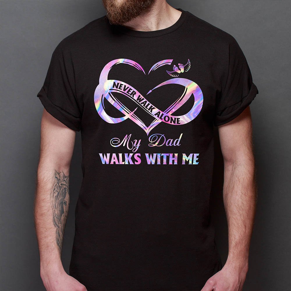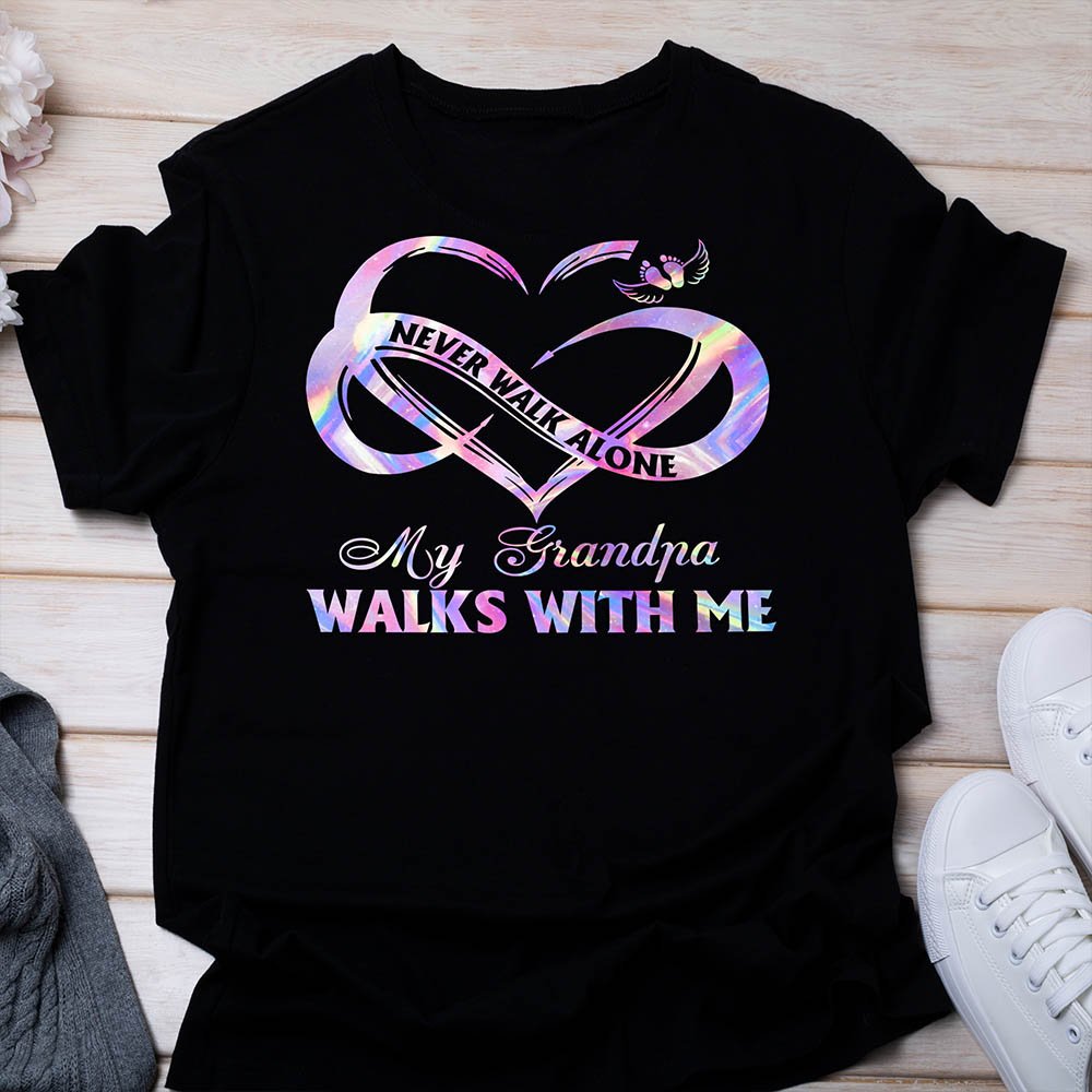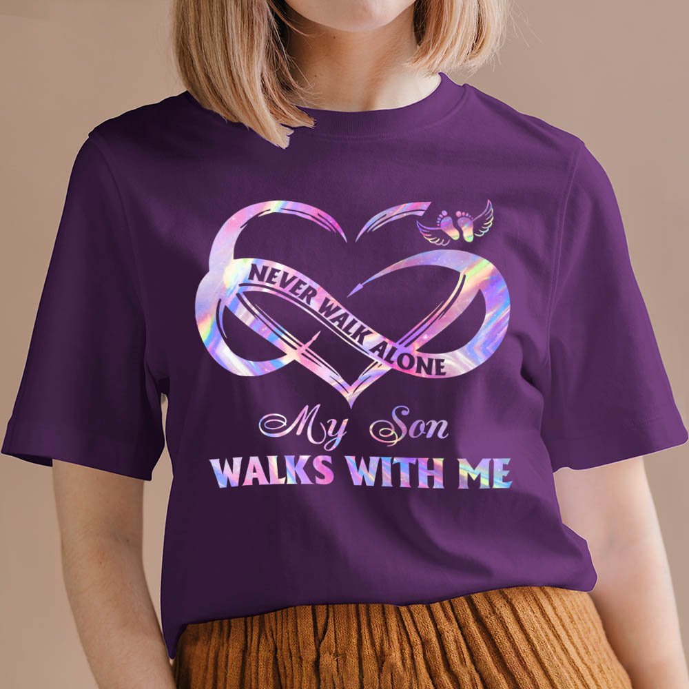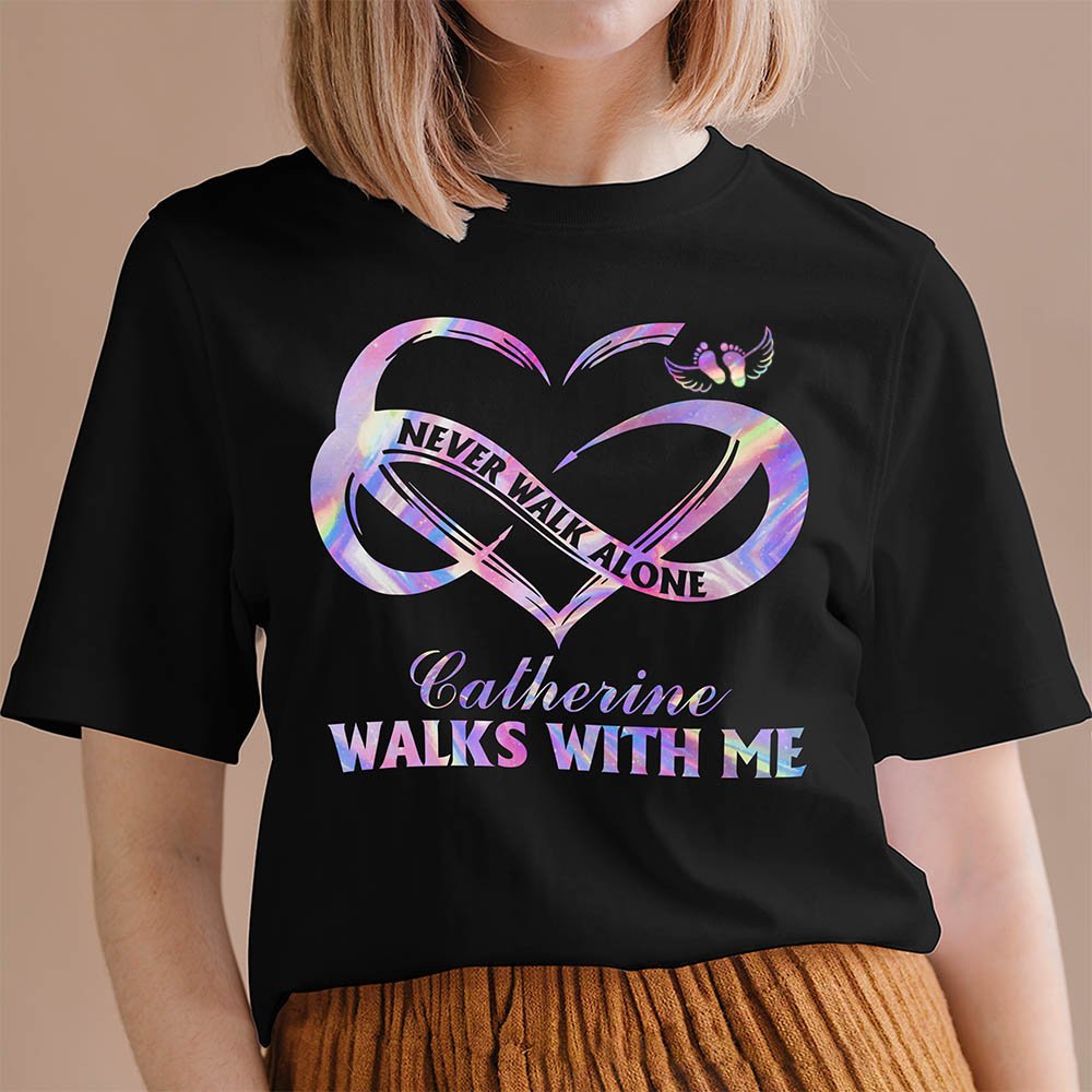 The Never Walk Alone t-shirt is made from with 100% cotton. This shirt is a pre-shrunk unisex cut meaning it will be a great gift for everyone to wear everyday. Share you love with this super soft t-shirt. With sizes ranging from XXS to XXL, this T-shirt will fit any one in your life! Share the message of your love with print "Never Walk Alone Walk with me" on the front of the T-shirt.