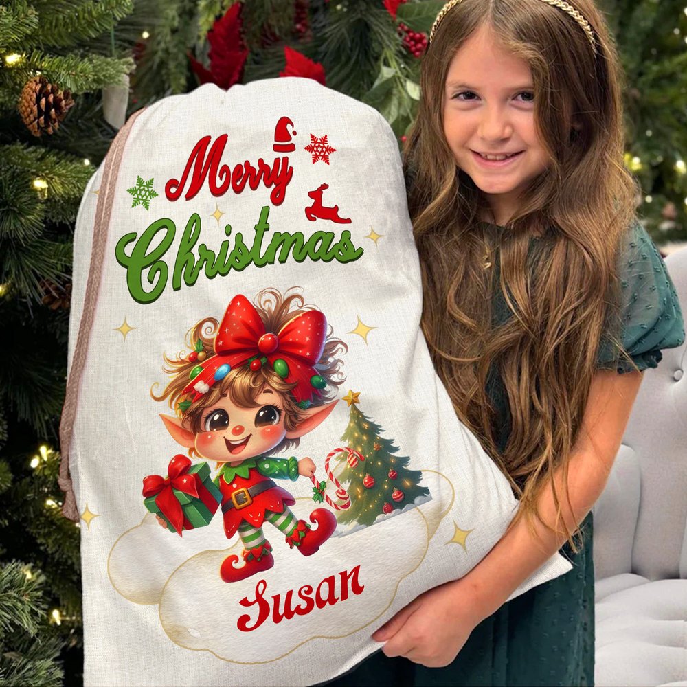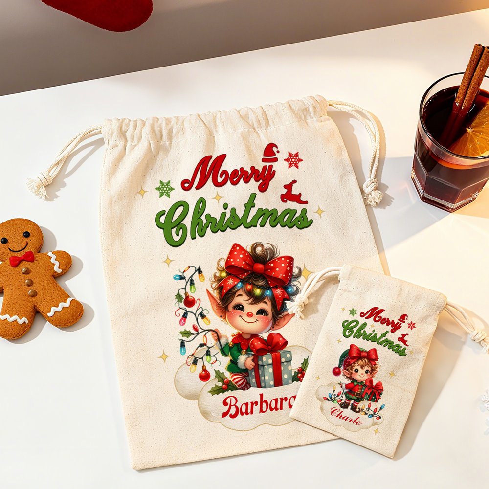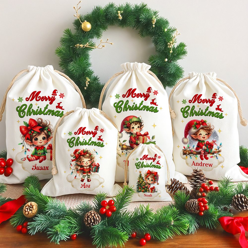 | Feature: | Drawstring Closure, Sturdy and Durable, Cute Christmas Elf Design |