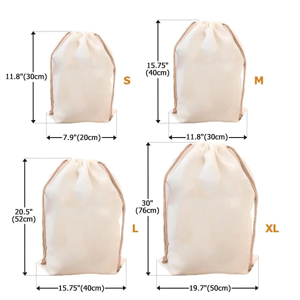 Made of durable, eco-friendly canvas and is reusable, embracing the concept of a green holiday. The drawstring closure provides convenient carrying while protecting gifts and preventing them from slipping out, achieving a perfect balance of aesthetics and practicality.