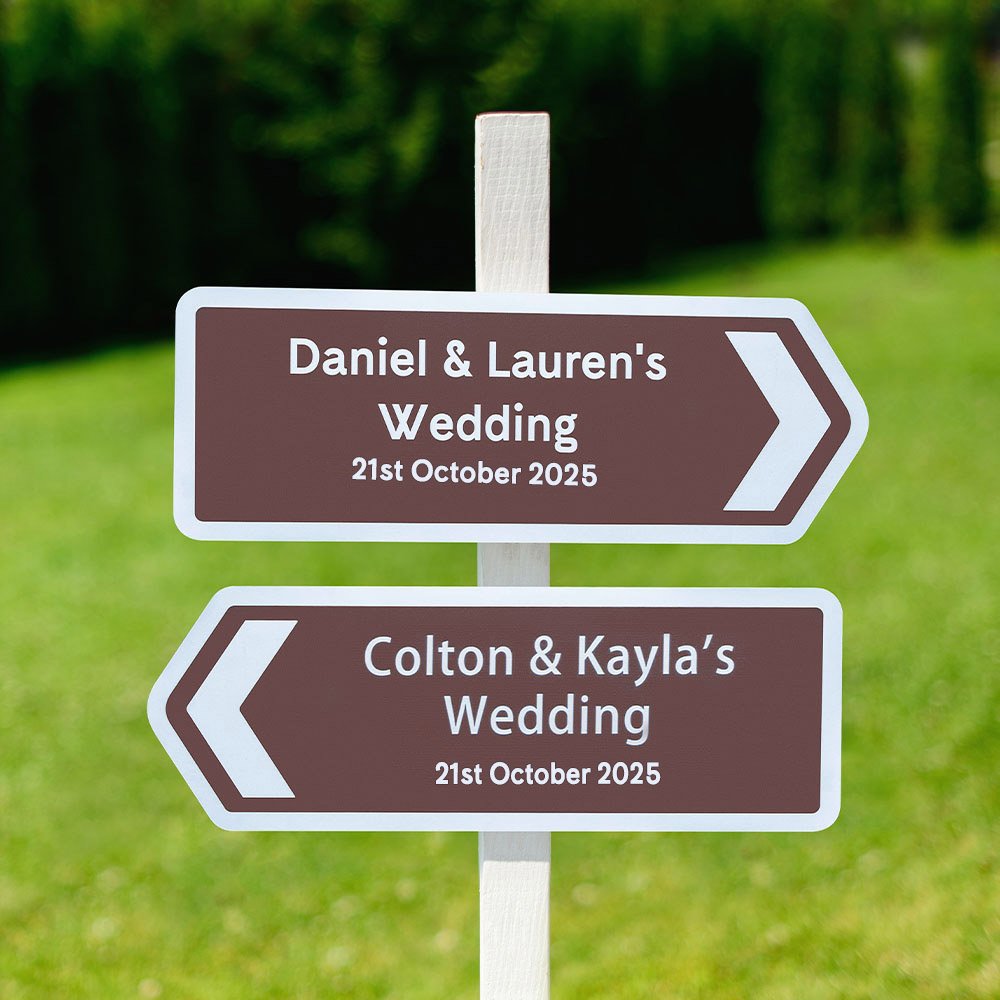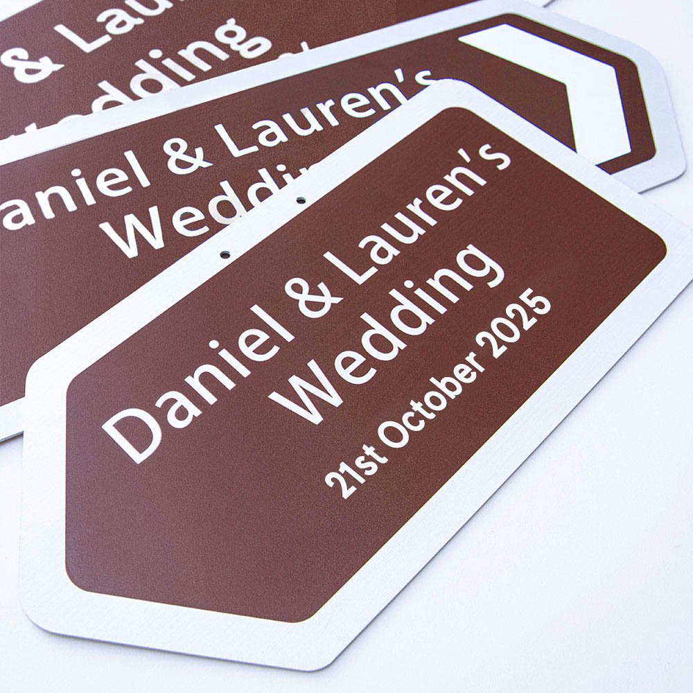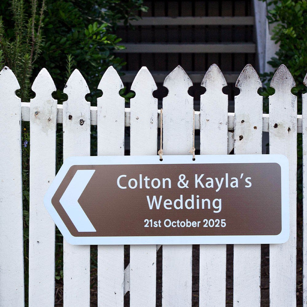 Inspired by classic road signs in North America, the UK, and Europe, this Personalised metal wedding sign brings a touch of traditional charm to your wedding celebration. Personalise the sign with your names and a date to make it a truly unique and cherished keepsake for the wedding.