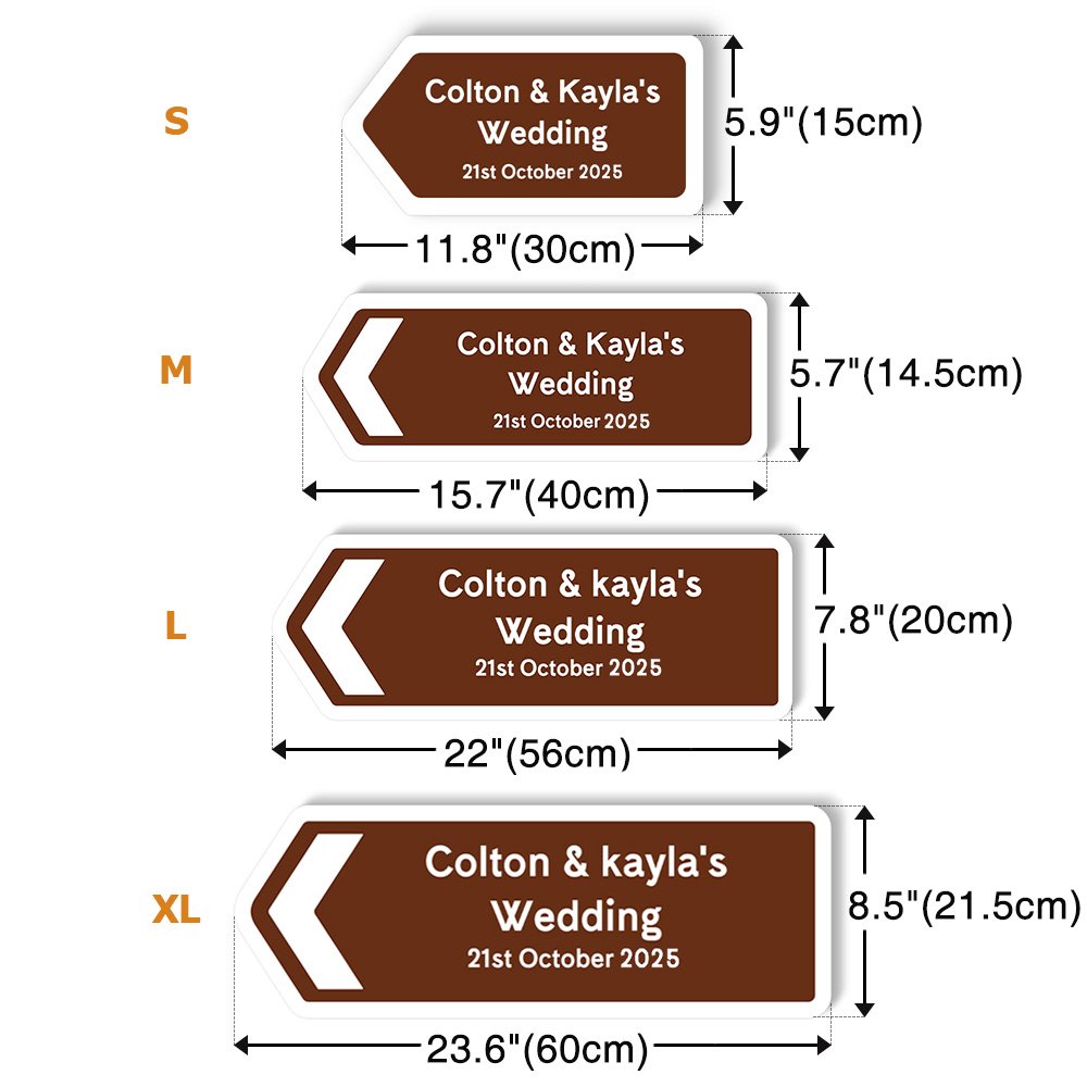 This sign is crafted from high-quality aluminum composite material. It is built to withstand various outdoor environments and ensure normal use. It is available in four sizes, making it perfect for wedding scenes.