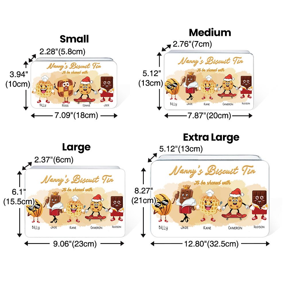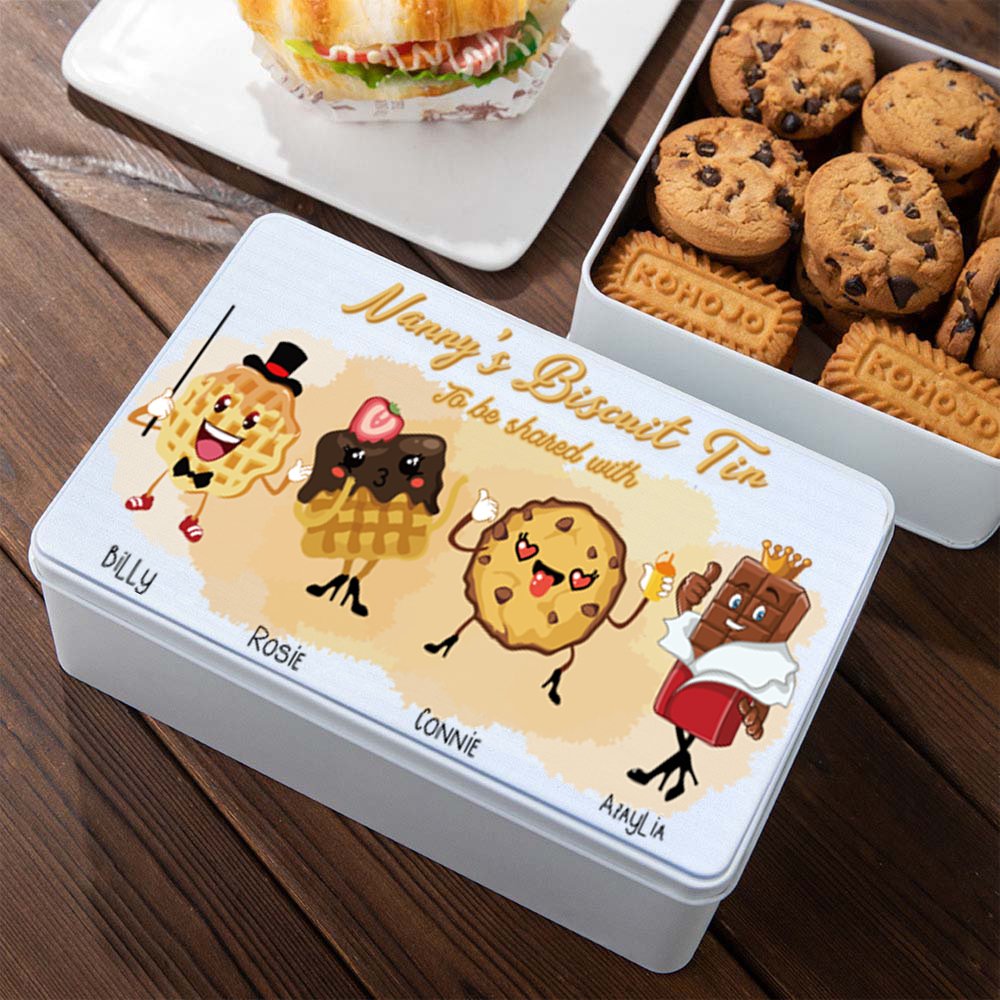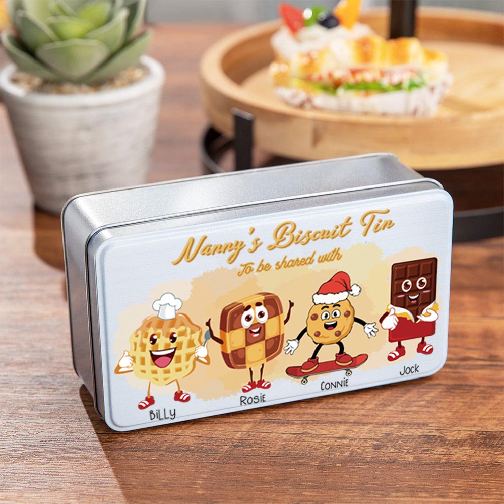 The wording on the tin can be changed and there are several cute little biscuit characters to choose from, you can even accessorize them with glasses. At the same time, 3 different sizes provide more options for storing different kinds of items.
