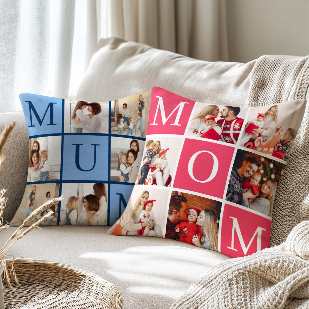 This pillow cover features a theme of “MOM” or “MUM,” complemented by six customizable photos, allowing you to showcase beautiful moments of intimacy between mothers and their children. With 20 colour options available, it perfectly matches your home decor style. The overall design is not only practical but also filled with warmth and emotion, ensuring that every mother feels the deep love of her family.