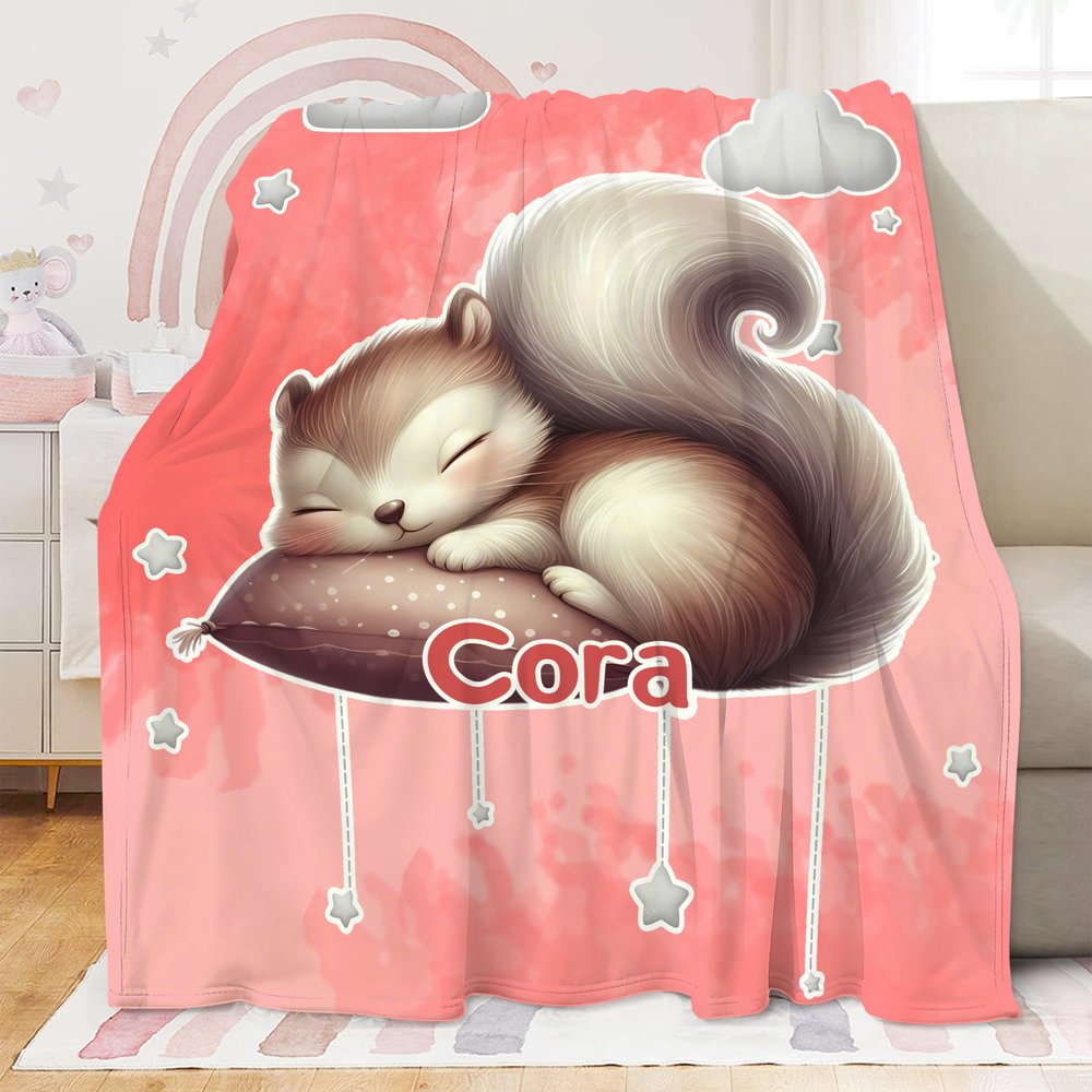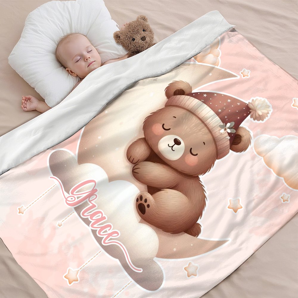 Personalised Moon Cloud Star Cute Cartoon Sleeping Animal Soft Throw Blanket with Name Home Decor Birthday Christmas Gift for Kids