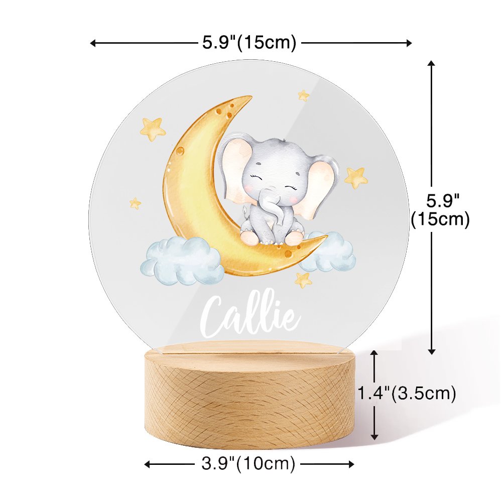Featuring a unique parent-child elephant and moon star design, this night light adds a cute touch and is perfect for creating a cozy ambiance. Customize the night light with your child's name, making each piece unique.