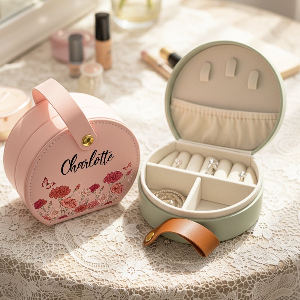 Centreed around delicate birth flowers and whimsical butterflies, this jewellery box is fully customizable with a name of your choice and 5 font options, turning every piece into a one-of-a-kind romantic keepsake. Soft floral motifs paired with fluttering butterflies create a vintage, soothing aesthetic that shines whether displayed on your vanity or carried with you, showcasing your unique style and heartfelt sentiment at a glance.
