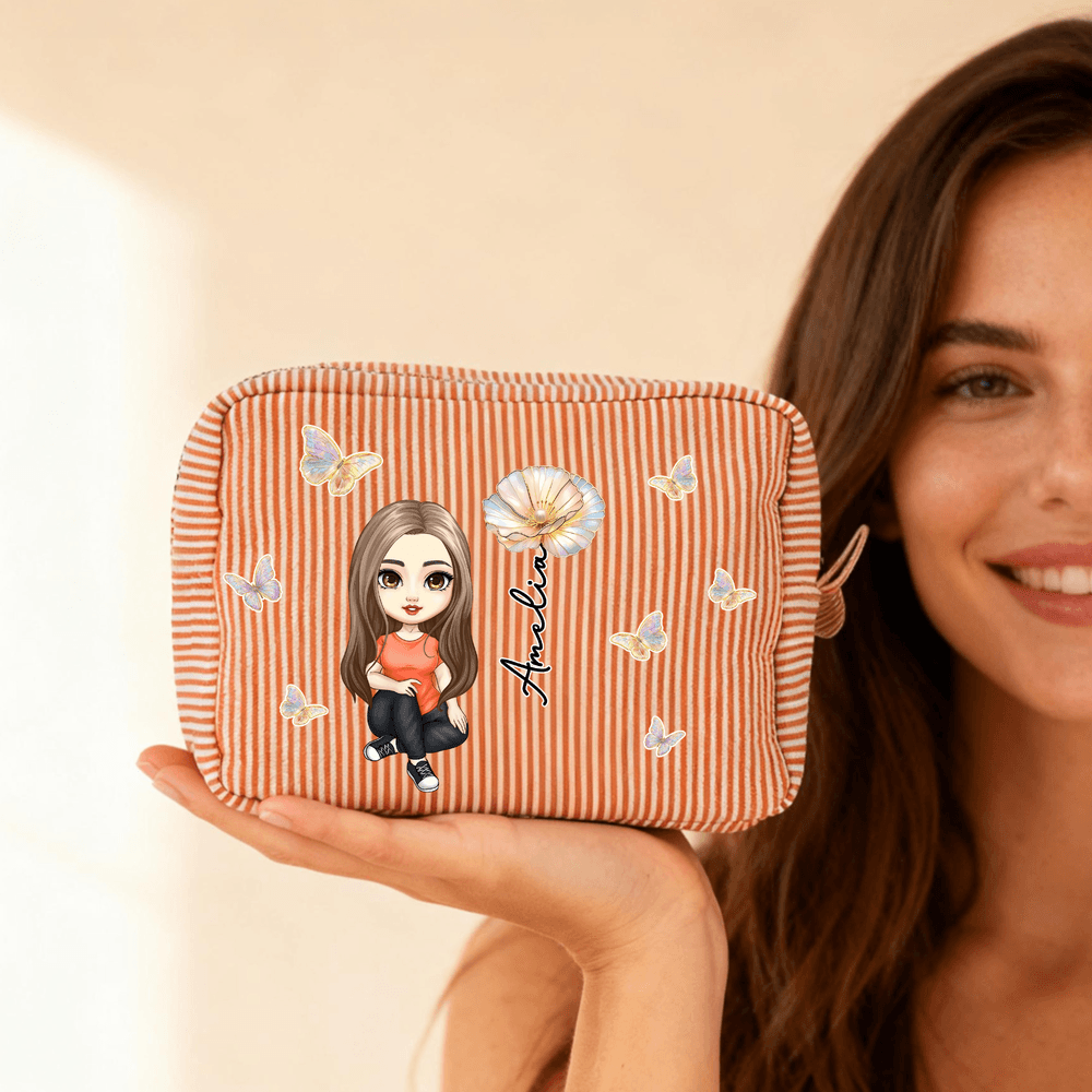 Break the routine, integrating the exclusive meaning of the birth flower with a cartoon character image, paired with fresh striped texture and vivid butterfly elements; support a customized exclusive name, every detail highlights a unique personality, say goodbye to identical cosmetic bags, and create an exclusive beauty ritual for yourself.