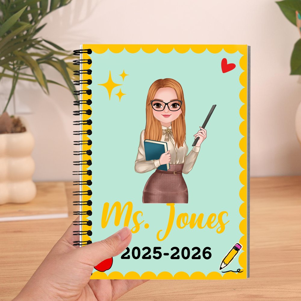 The notebook features a charming cartoon teacher design, complemented by a wavy border and a customizable name option. Available in a variety of colour combinations, it fosters a unique connection between teachers and students, inspiring educators to continuously innovate and explore in their teaching journey.