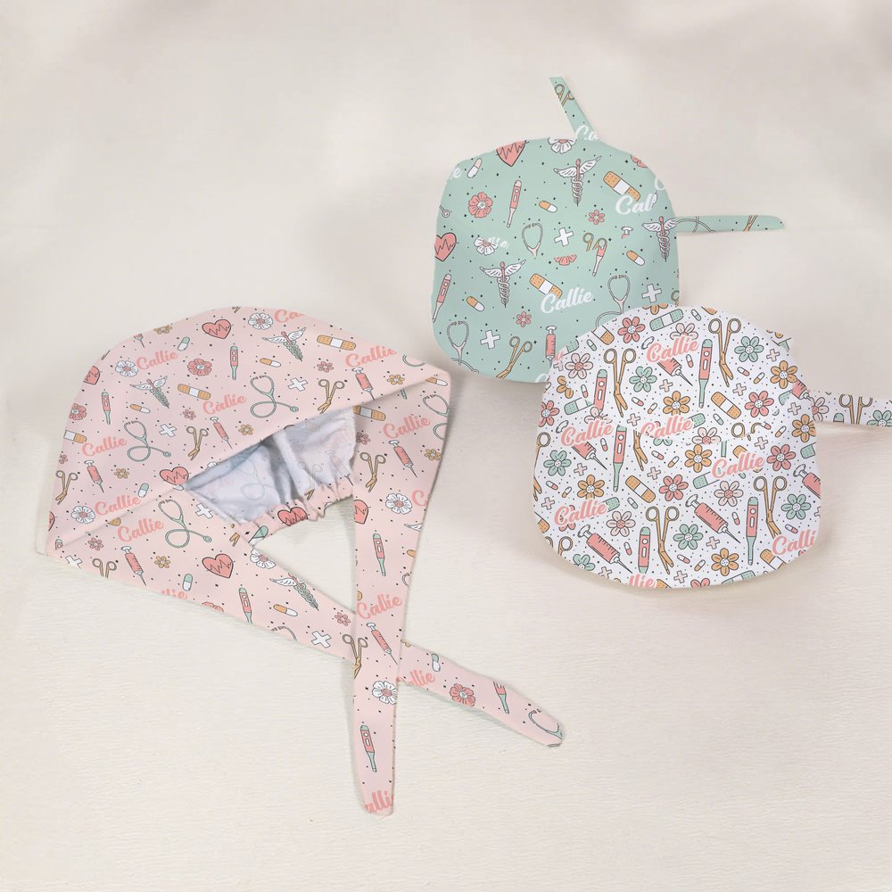 The cap is printed with floral and other medical element patterns, breaking the monotony of the traditional scrub cap. Customizable names create a "gentle and healing" atmosphere in the overall design, allowing medical staff to showcase their unique personalities even in busy work.