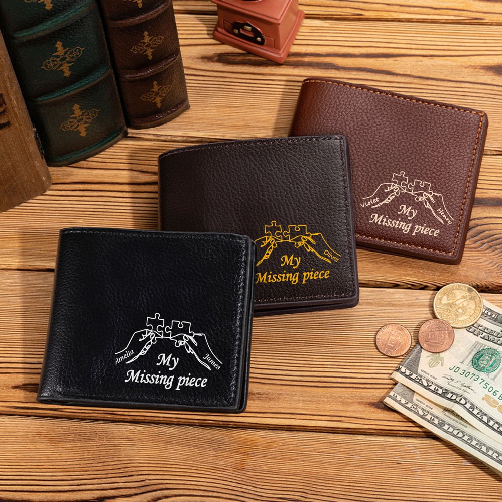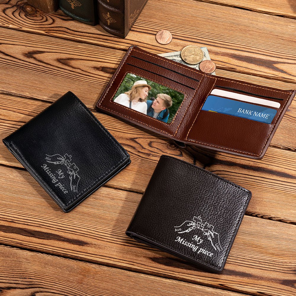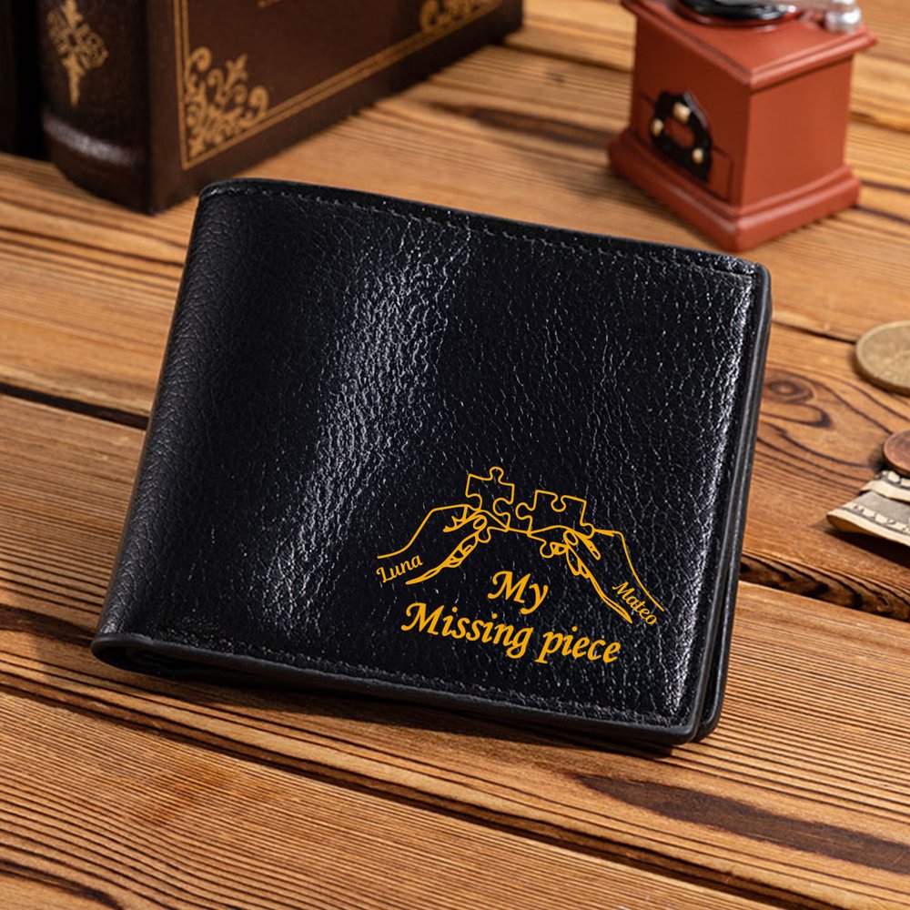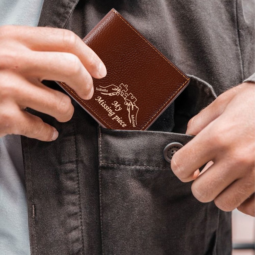 This custom couple's wallet centres around the "hands fitting together a puzzle" pattern, paired with personalised names. It cleverly echoes the theme "My Missing Piece," giving tangible form to the sentiment "you are the missing piece of my soul," conveying a unique emotional bond through both visual and textual elements.