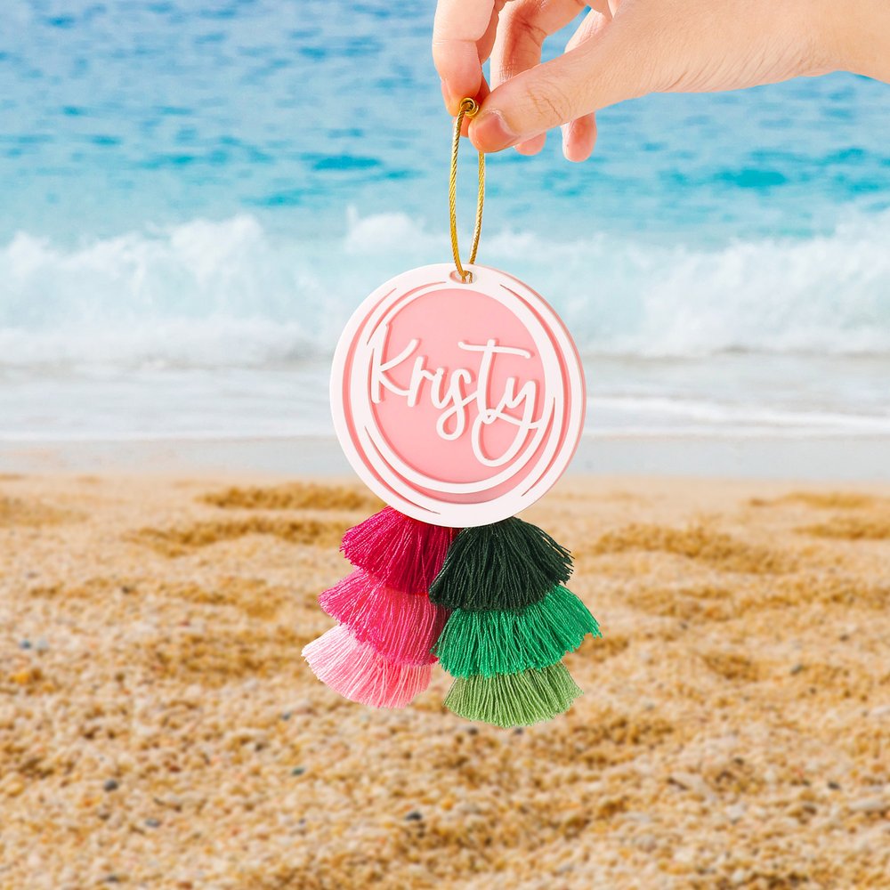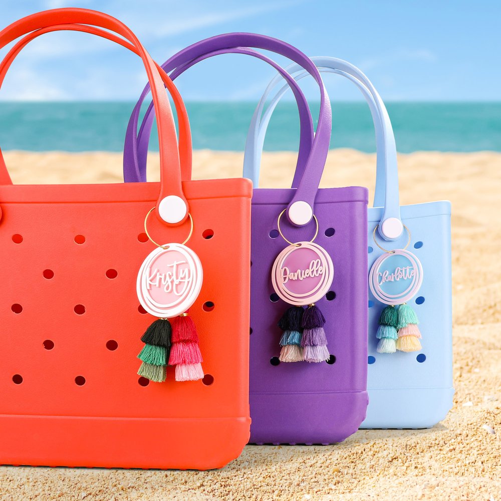 Attaching this charm to your beach or pool bag will not only display your name, preventing confusion or theft, but also add a touch of flair to your vacation look. On campus, attach it to your backpack to make you stand out; at the gym, it'll Personalise your gym bag; and on your daily commute, it'll liven up a plain old bag. Additionally, you can use it as a luggage tag when traveling, making it easy to identify your belongings.