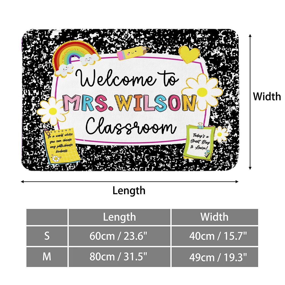 This doormat features childlike elements. Patterns such as rainbows, flowers, and sticky notes are bright, lively, and cute, creating a cheerful and pleasant atmosphere. The eye-catching "Welcome to Classroom" in the centre can be customized on demand to show a sense of exclusivity and add warmth and personality to the classroom.