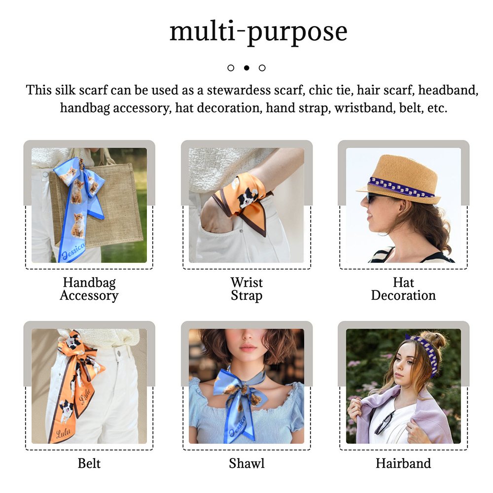 More than just a scarf, this piece offers endless styling possibilities. Wrap it around your ponytail, wear it as a chic headband, tie it to your Handbag, or loop it around your neck. It’s a fashionable way to show off your personality and your pet, no matter the outfit or occasion.