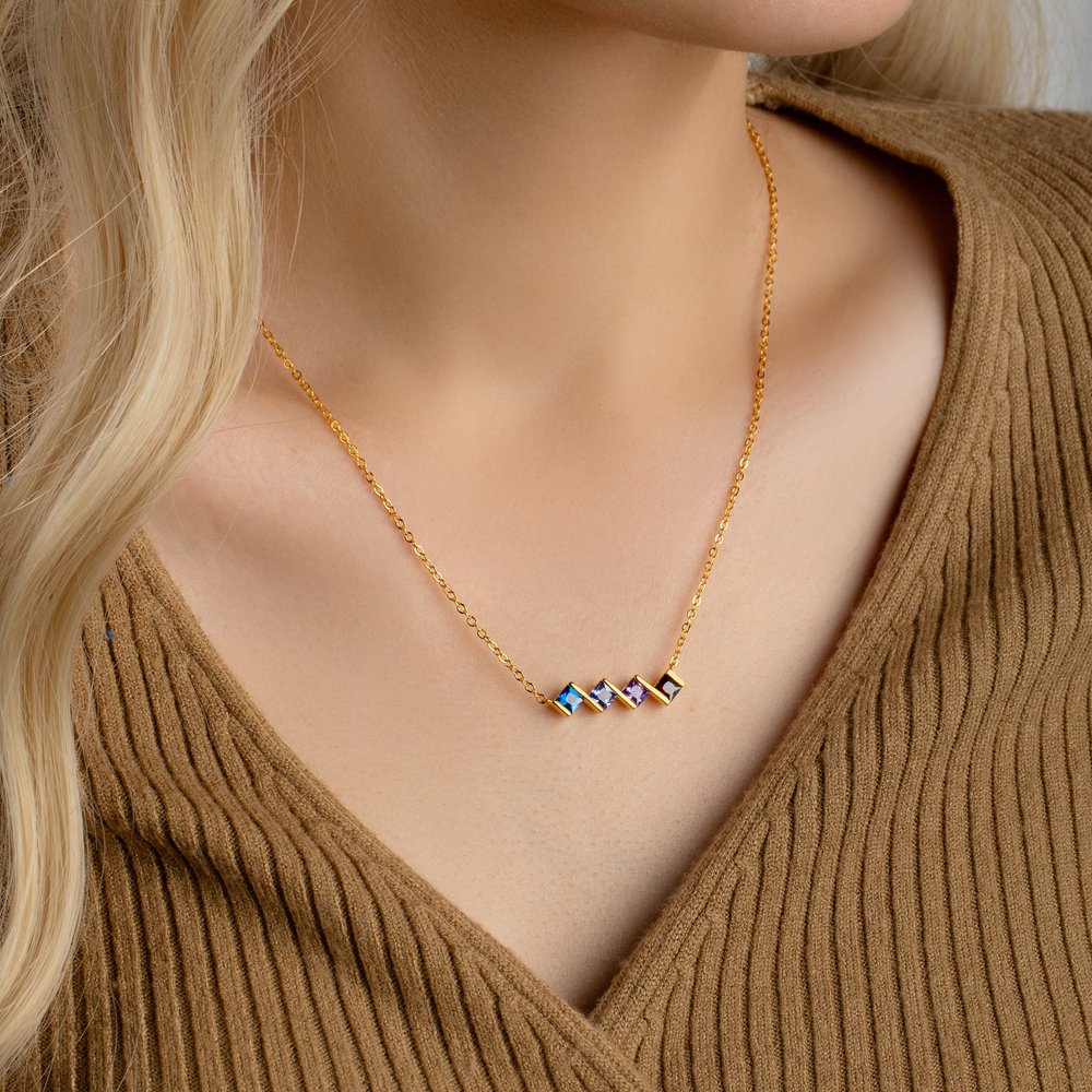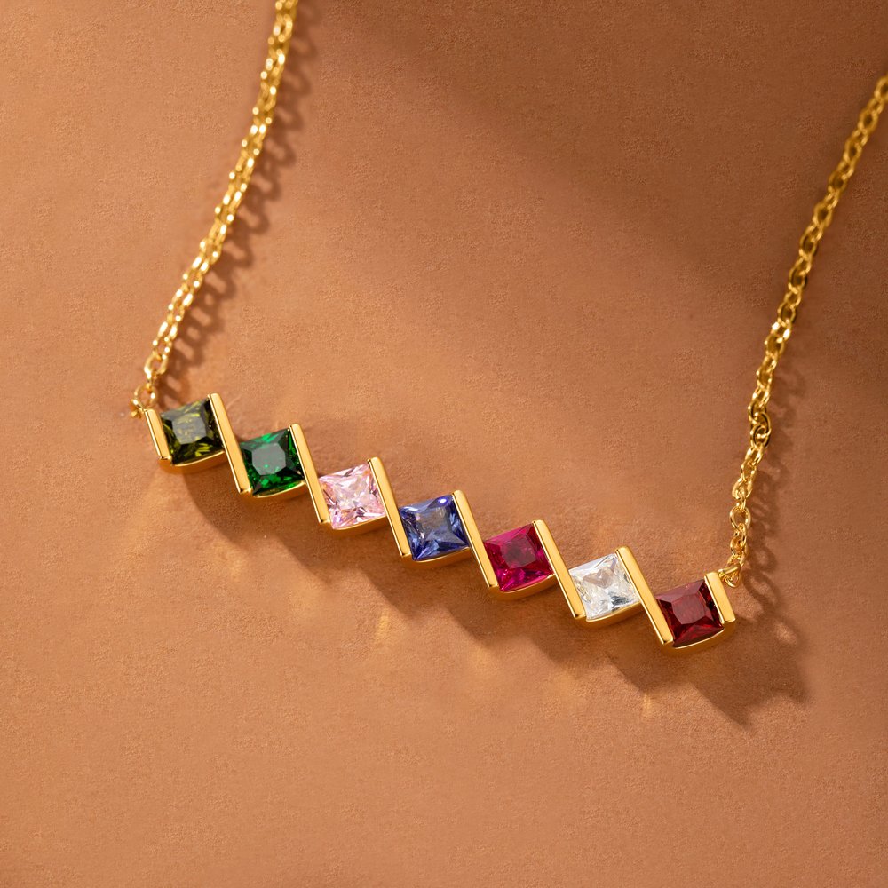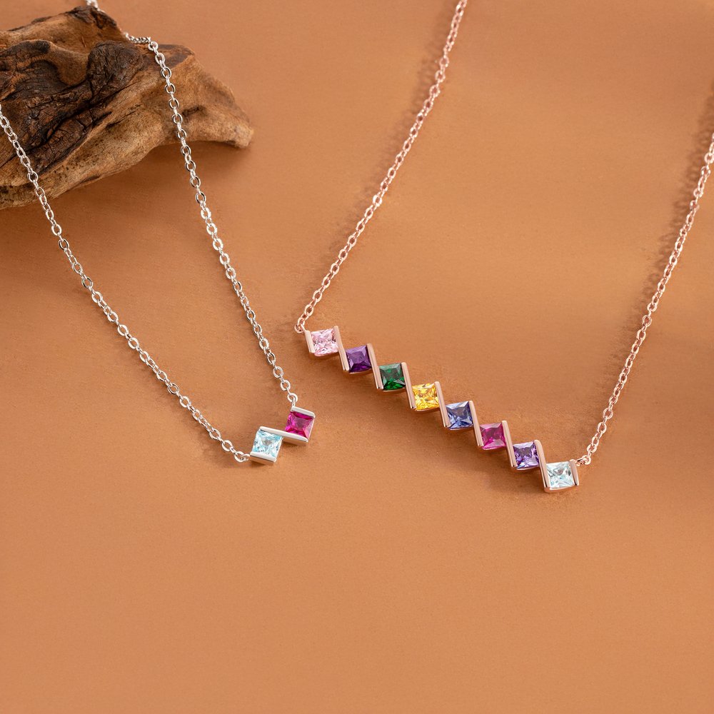 Create a unique piece of jewellery featuring 1-8 birthstones, each representing a cherished family member. This style necklace lets you keep your loved ones close to your heart, with each gemstone symbolizing a special birthday in your family.