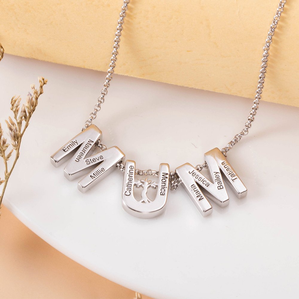 Mum, a title just above the Queen. When it comes to finding a gift for a woman who makes selfless sacrifices for her children, it's always so hard. Now we offer you a great way to give her this sweet necklace as a reminder of just how incredible she is. With Personalised names of all her children engraved around the MUM pendant, this necklace will make a meaningful gift for a mom to cherish forever! Honor every mom of your life with this meaningful necklace!