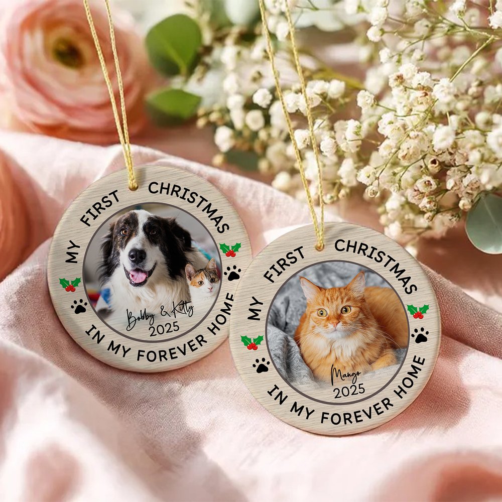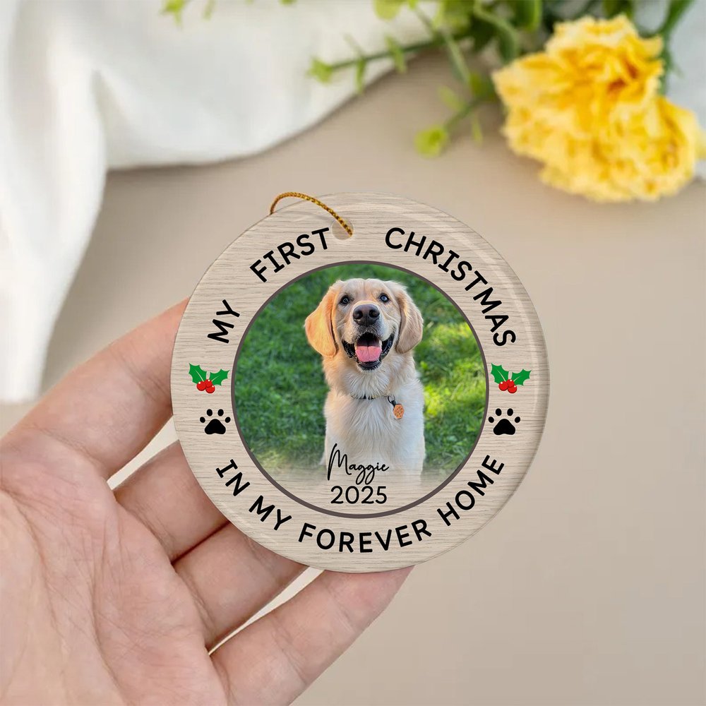 Personalised My First Christmas Photo Ceramic Christmas Ornament with Name and Year Home Tree Decor Christmas Gift for Family Friends Pet Lovers