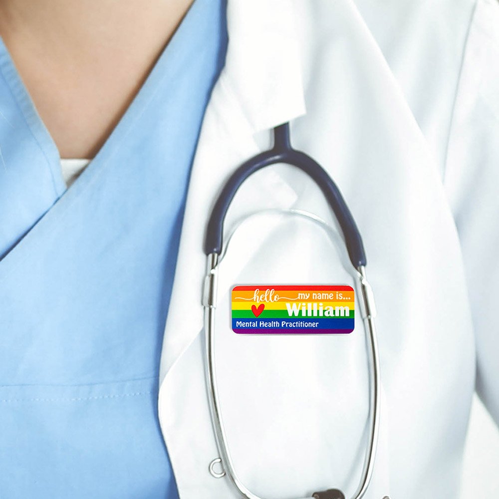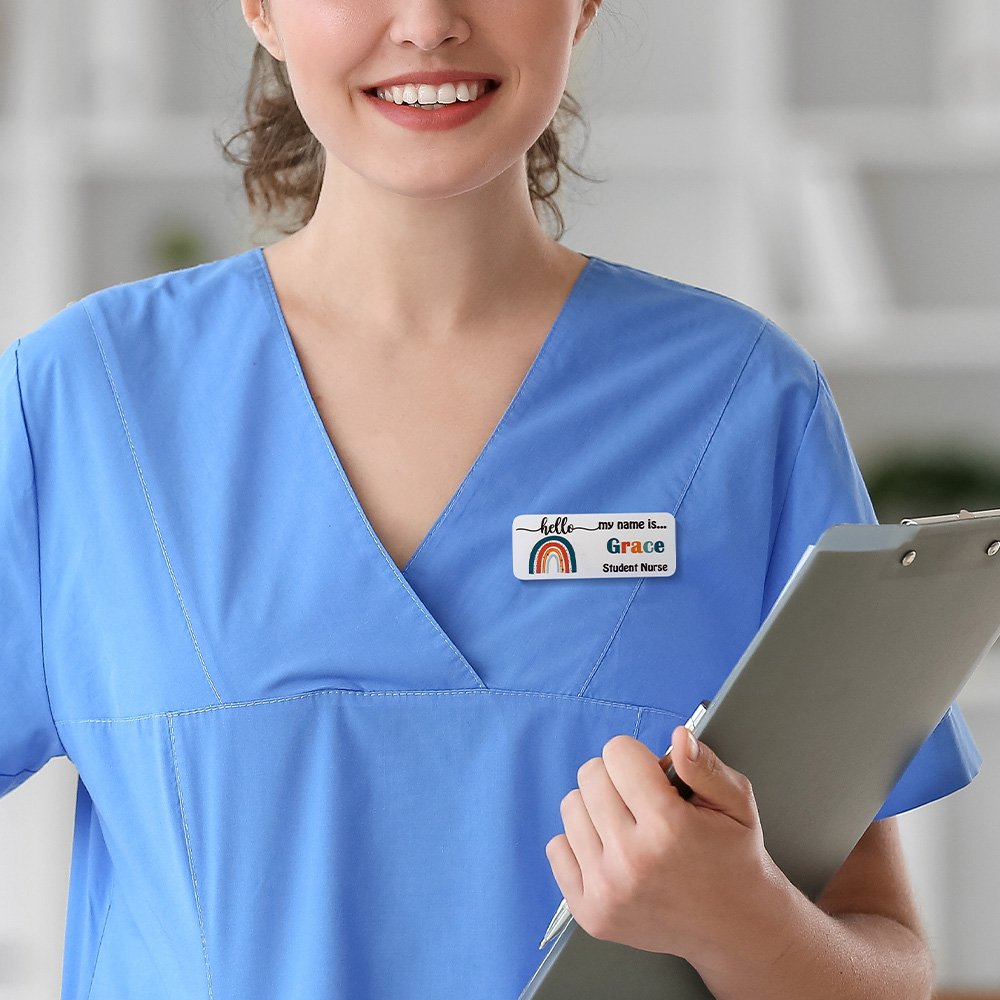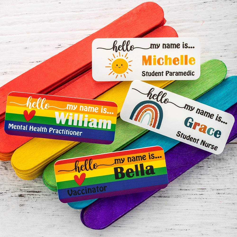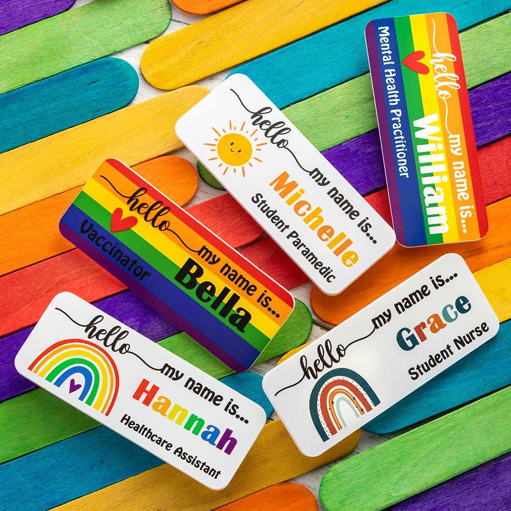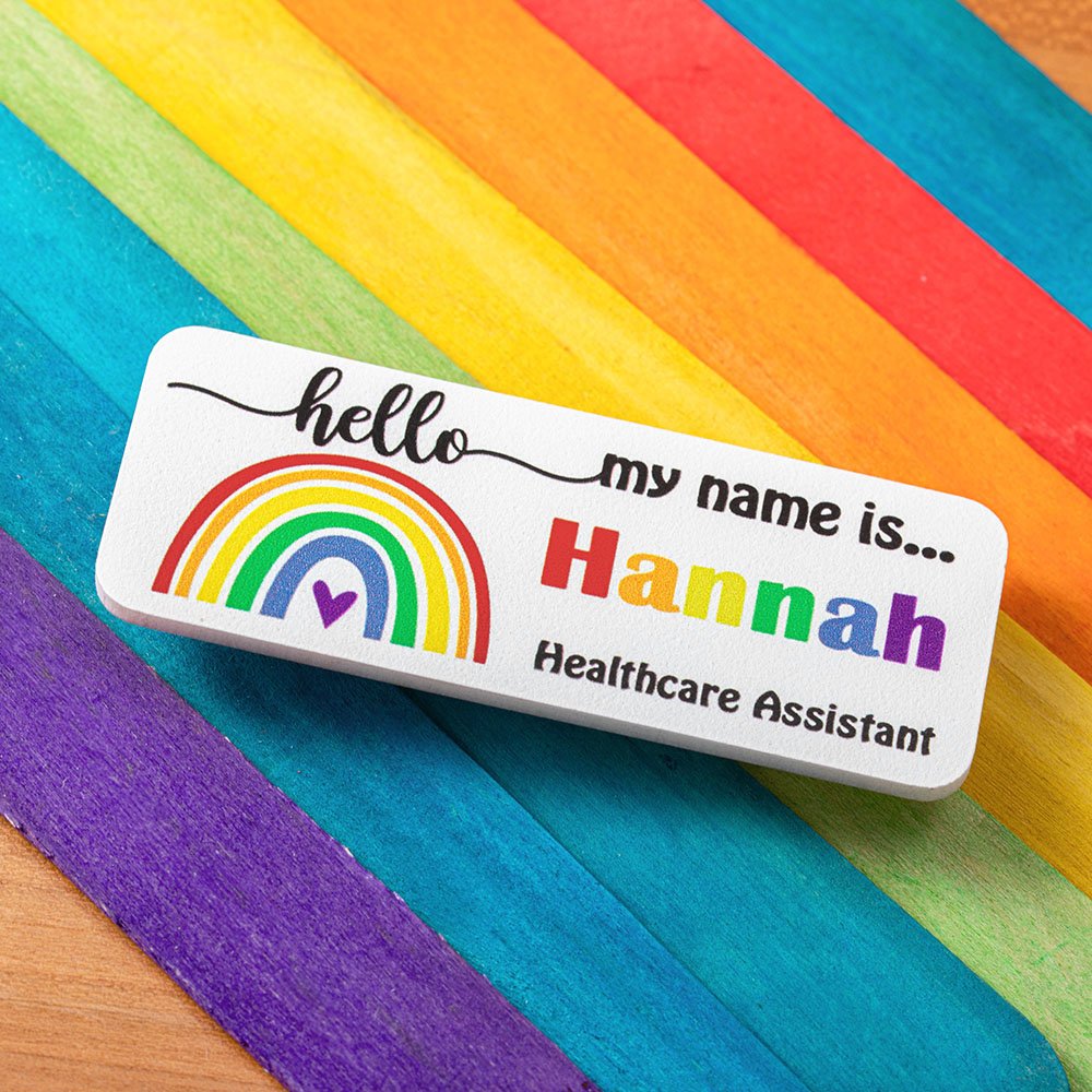 This vibrant and cheerful badge features a delightful design that combines a rainbow, sun, and heart to symbolize positivity and caring. The option to Personalise with a name adds a heartfelt touch, making it a unique accessory that expresses gratitude and appreciation for their dedication and hard work.