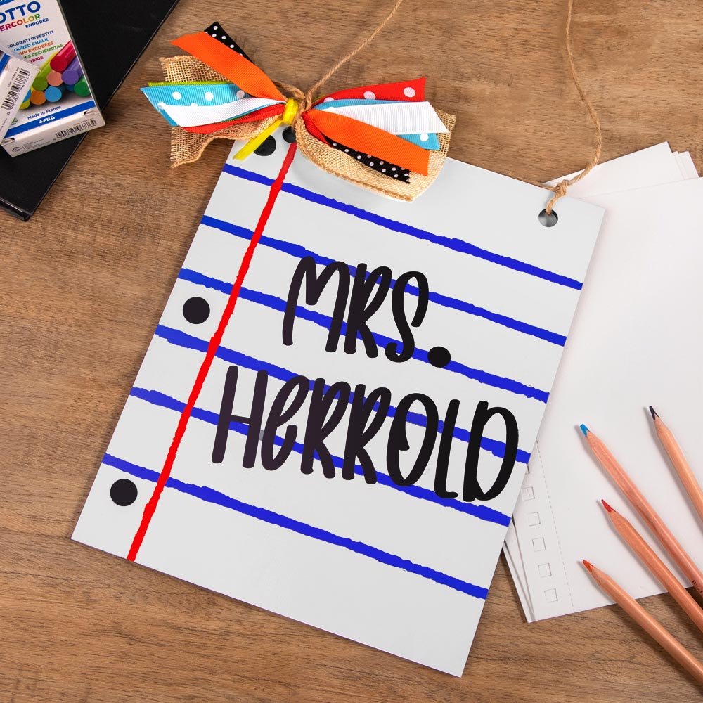Not only is this wooden door sign a wonderful gift for teachers, but it also serves as a delightful decoration for any classroom. The notebook paper design adds a touch of whimsy and creativity to the space, creating an inviting and inspiring environment for students to learn and grow.