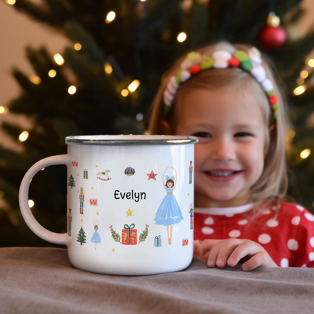 Our enamel mug is designed with cute cartoon characters, Nutcracker, Mouse Prince, or ballet girl, and you can customize the mug by adding your name, making it truly one-of-a-kind.