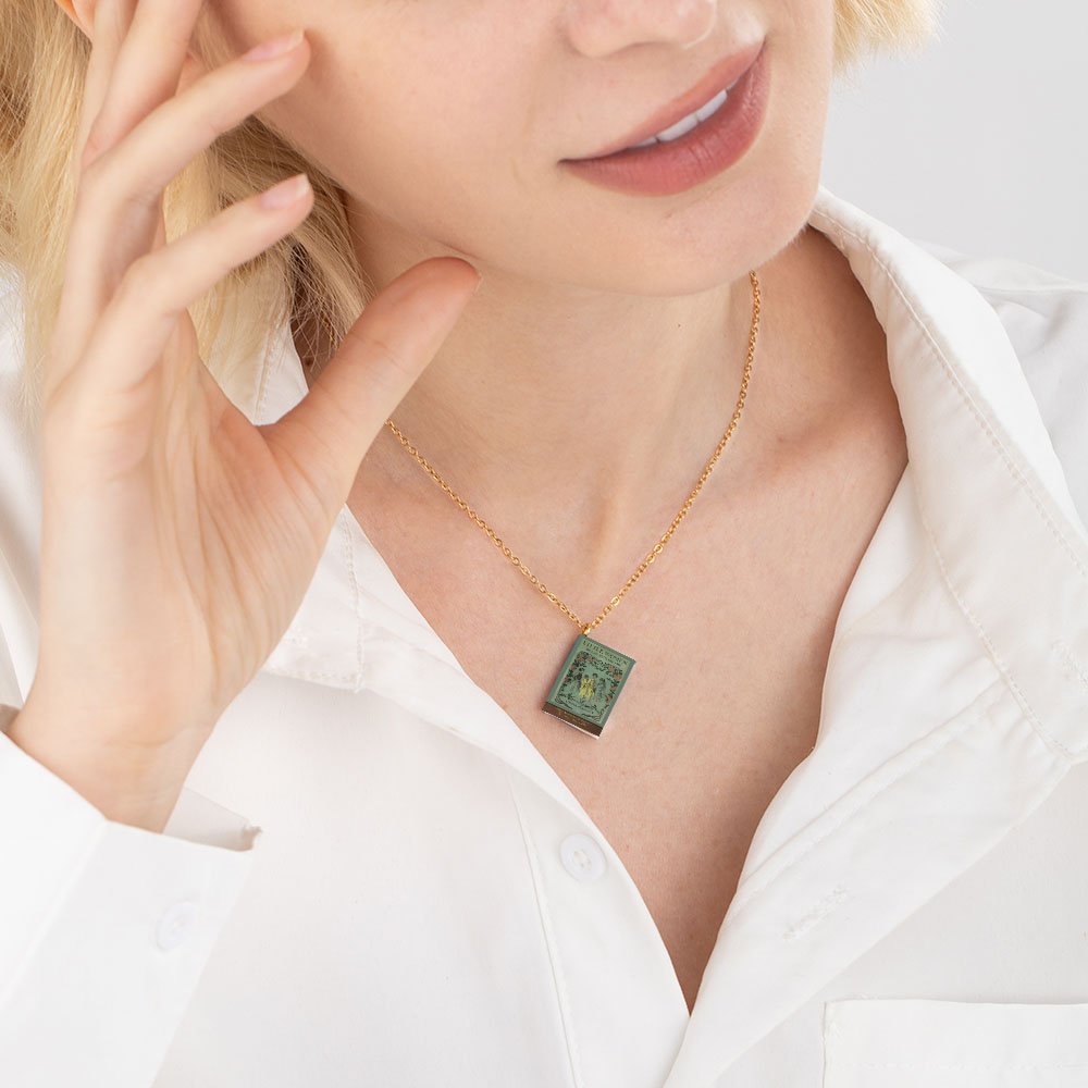 This necklace is an excellent gift idea for book lovers, writers, and academics or simply as a treat for yourself. The design of the pendant is timeless and elegant, making it ideal for everyday wear or special occasions. The necklace serves as a tribute to the power of literature, and the love and passion it ignites within each of us.