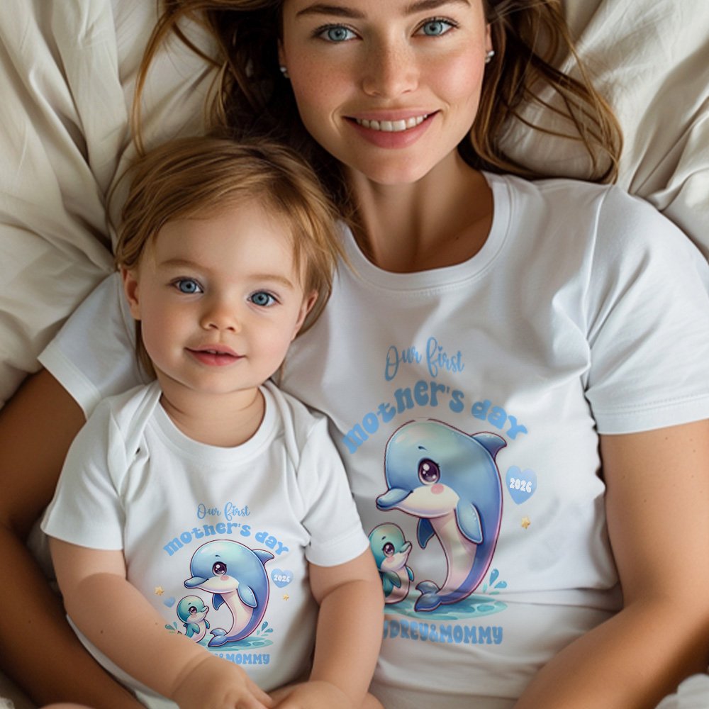 Adorned with adorable illustrations of mummy and baby animals, these outfits bring a touch of the animal kingdom's magic to the first Mother's Day special occasion. The sweet imagery of these animals, whether a bear hugging its cub or bunnies hugging, evokes a sense of warmth and love. What makes it truly stand out is the addition of the year and the names of the mom and baby. The bold text, "Our First Mother's Day," clarifies the moment's significance.