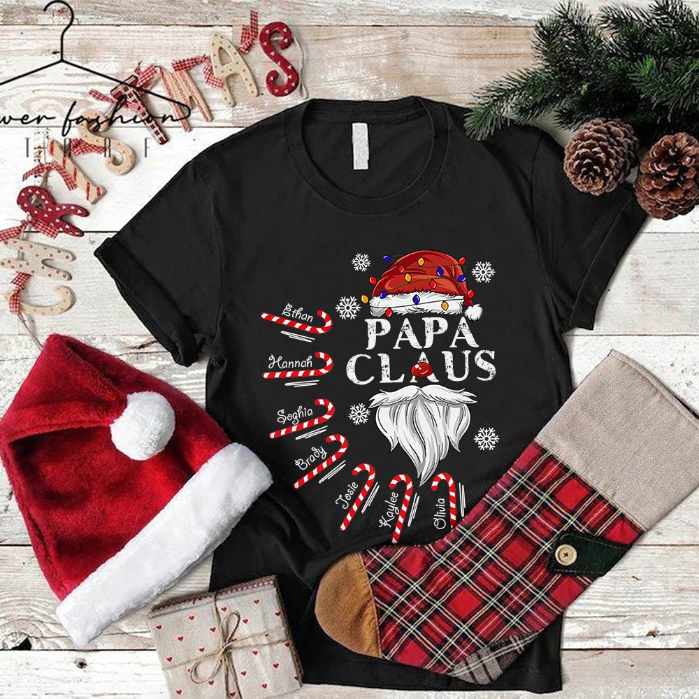 Personalised papa claus Sweets cane Christmas shirt, grandpa claus, daddy claus gift for papa matching family custom gift Xmas is the good choice for Christmas season daily life Christmas night party cousin matching pyjama on holiday and perfect for special holiday events.