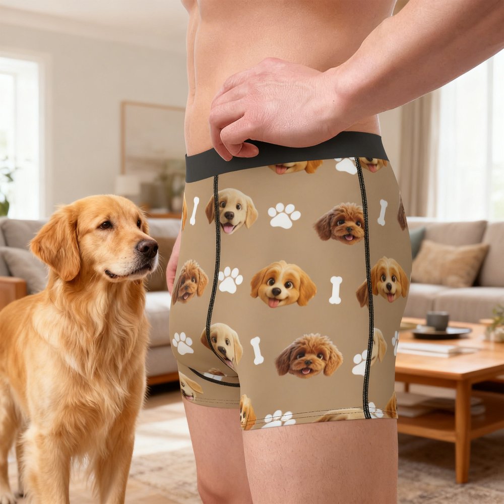 These men's boxer briefs feature custom 3D pet portraits, vividly printed on the fabric. Each pair can be personalised with the face of a beloved pet, creating a fun, meaningful, and one-of-a-kind design that highlights the special bond between the wearer and their furry companion.