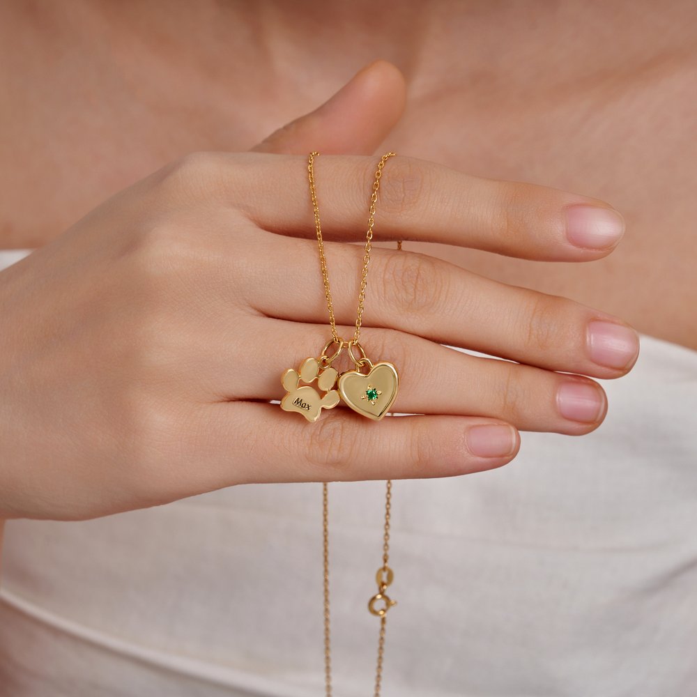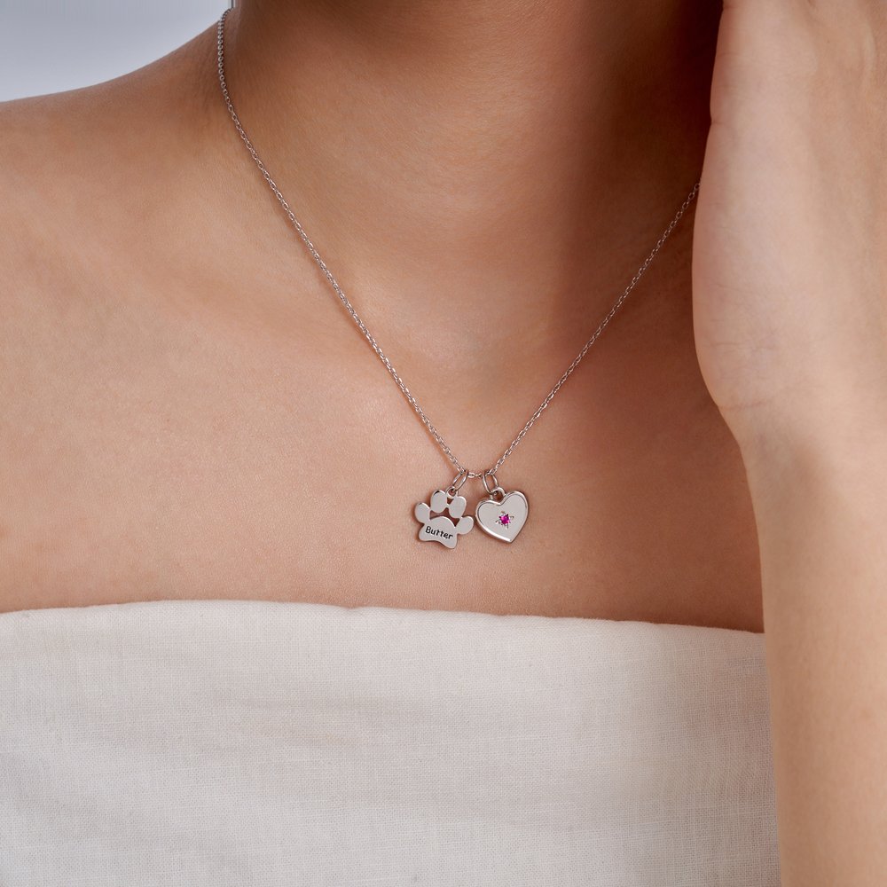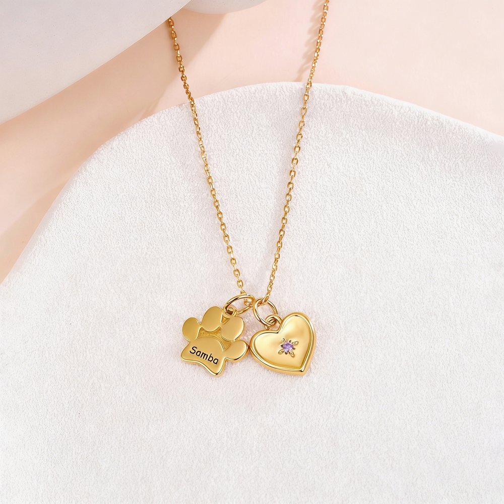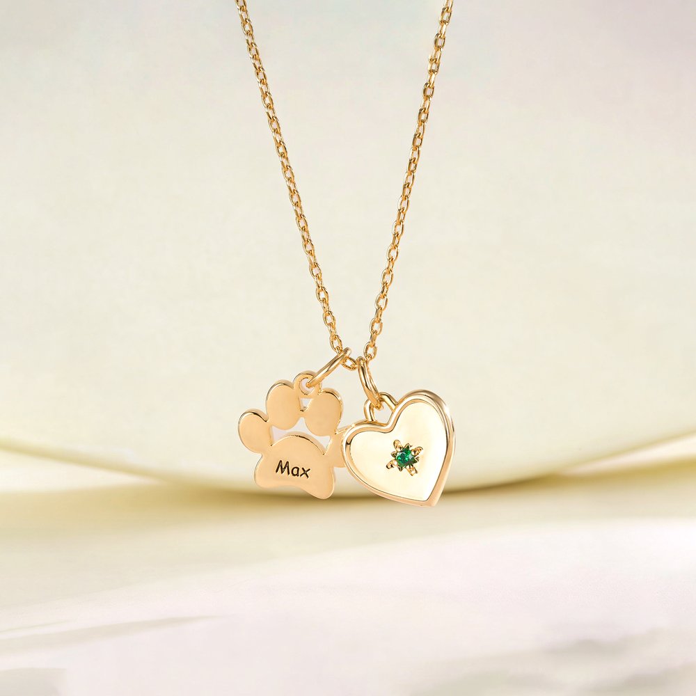 This necklace features a paw print and heart design, expressing deep love for your pet and creating a personalised necklace that combines elegance and emotion. The heart pendant can be customized with a birthstone, and the paw print pendant can be engraved with your pet's name, making every wear feel like a gentle companionship with your beloved pet.