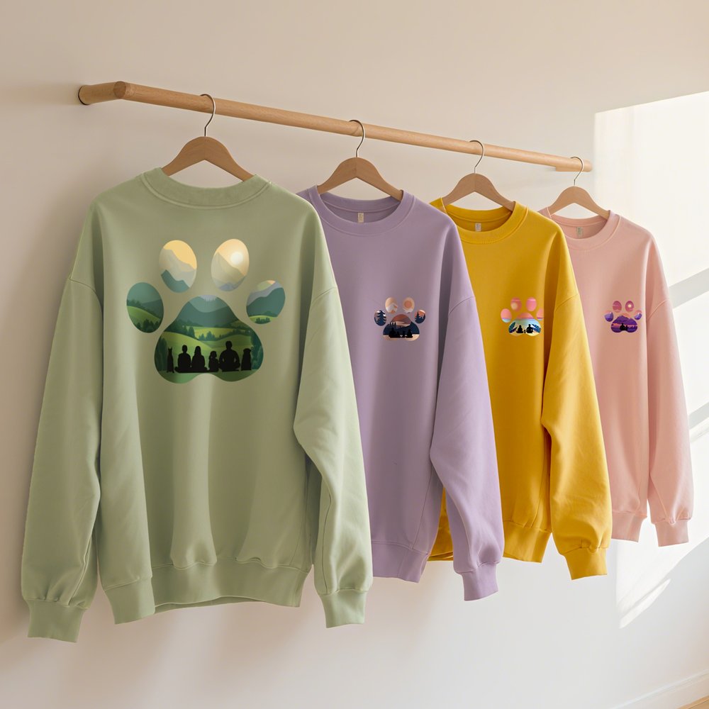 T-shirts and crewneck sweatshirts are both made of high-quality fabric, which is skin-friendly and breathable, making them suitable for daily wear. Using white ink heat transfer printing technology, the patterns are fine, wash-resistant without fading or deformation, and can maintain a good condition for a long time, accompanying you through countless times with pets and nature.