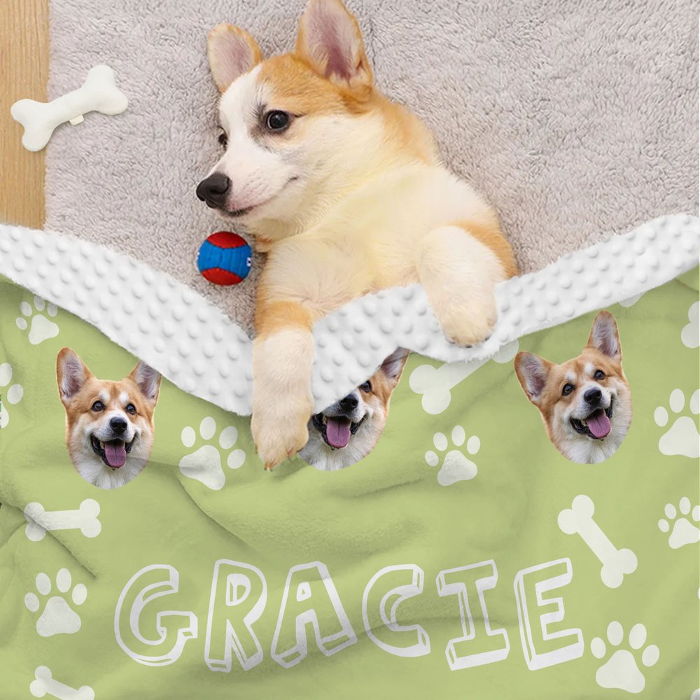 This pet blanket features pet-specific elements such as bones, paw prints, and fish bones. It supports customization with 1-3 photos of your pet and their name, permanently capturing their adorable moments. This makes the blanket unique and becomes a special emotional connection between pet and owner.