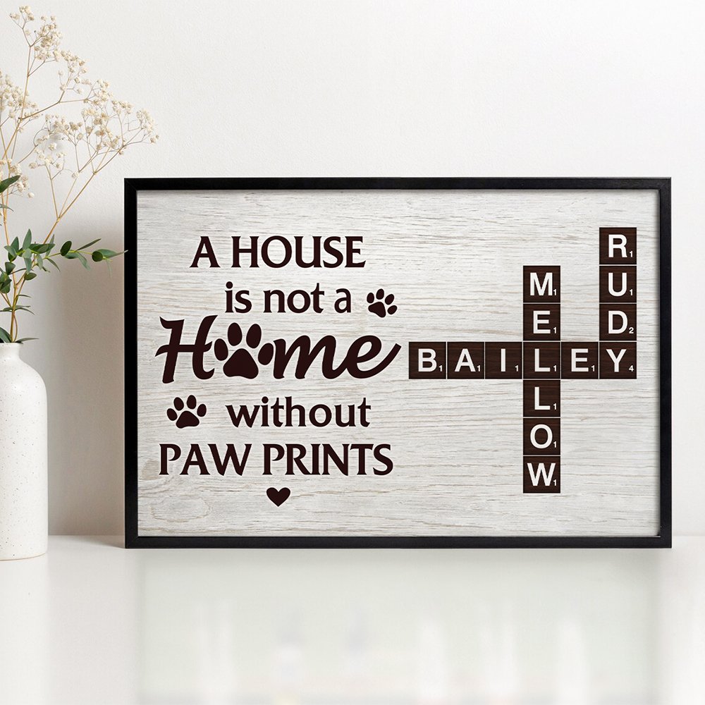 Simply provide your pets' names, and a beautifully customized crossword layout will be generated just for you. Featuring paw prints, hearts, and heartful quotes, this artwork perfectly symbolizes the bond between you and your beloved pets.