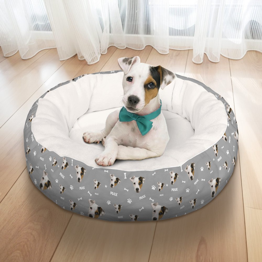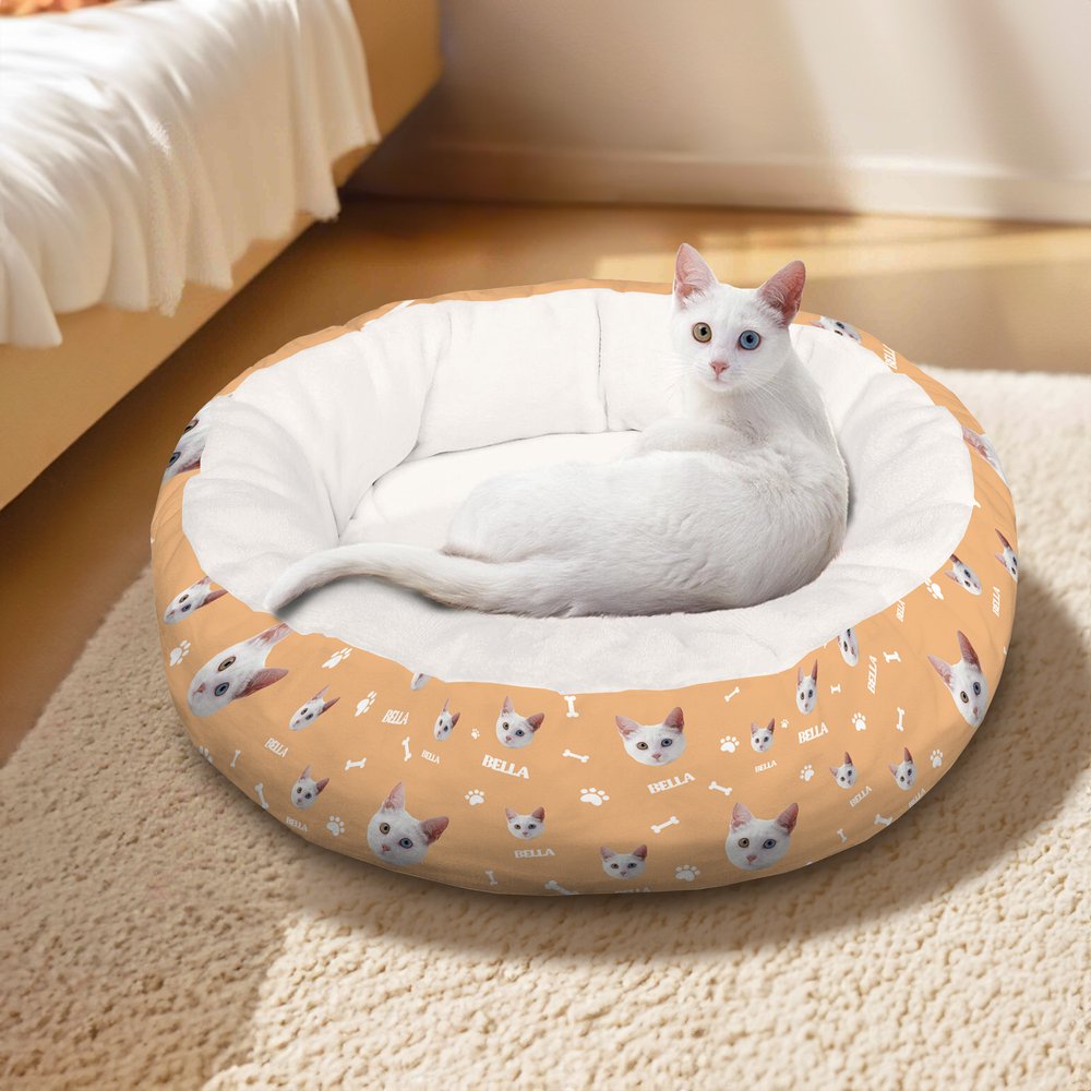 This pet bed features a design centreed around your pet's portrait, with their name and image beautifully adorned throughout the entire bed. The warm and cute design allows you to customize a unique space for your beloved pet, making it an ideal choice for every pet lover looking to create a comfortable little home for their furry friend.