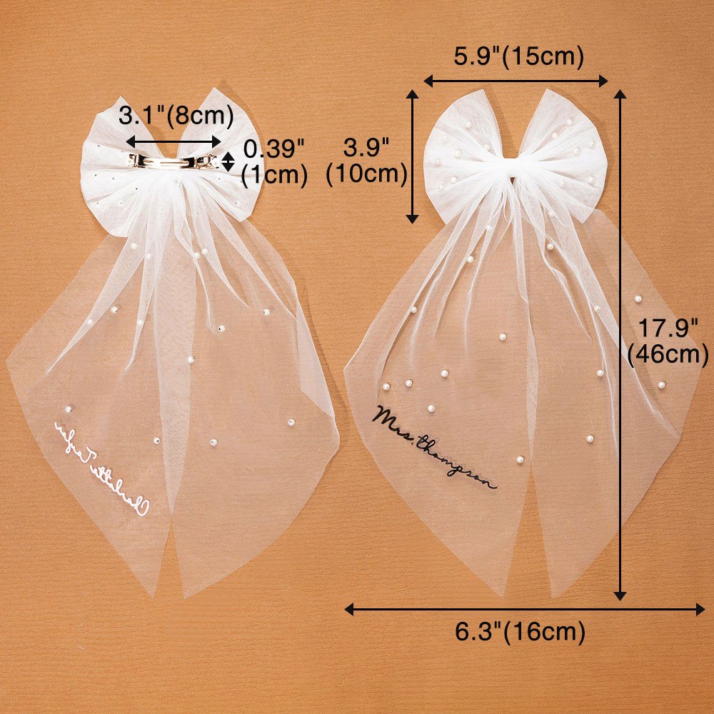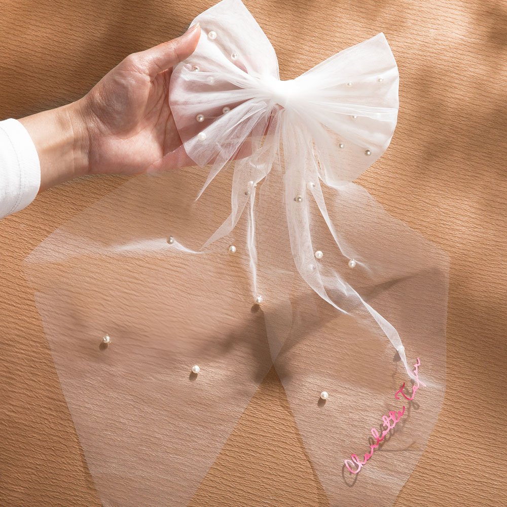 This bride bow's white colour and pearls give it a classic and timeless appeal. It instantly enhances any party outfit by adding a touch of elegance and sophistication, making the bride shine on her special day.